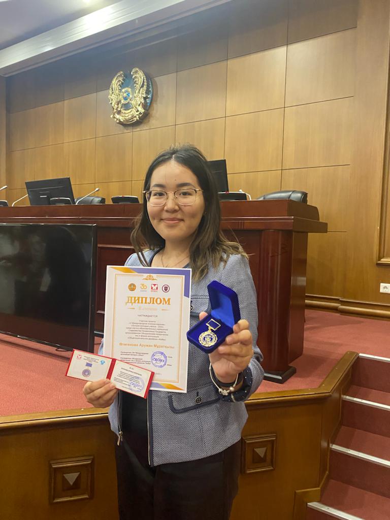 Жалпы медицина-1 мектебінің 2-курс студенті Өтегенова Аружан 4-маусымда Нұр-Сұлтан қаласында, білім және ғылым министрлігінде марапаттауда болып қайтты. Қазақстан және Өзбекстан білім және ғылым министрлерінен “Лучшие молодые учёные-2022» атағын және медаль иеленіп қайтты.