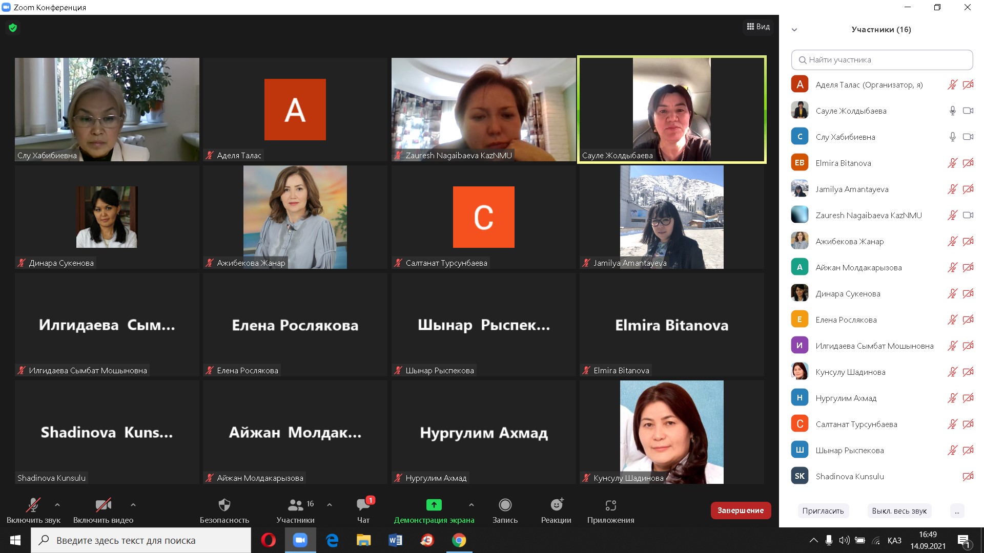 (KAZ) 2021 жылдың 14-ші қыркүйек күні Жалпы медицина-1 мектебінің деканы Слу Хабибиевна Измайлованың профессорлық-оқытушылық құрамымен онлайн кездесуі өтті. Күн тәртібінде ҚР Президенті Қасым-Жомарт Кемелұлы Тоқаевтың халыққа жолдауы талқыланды.