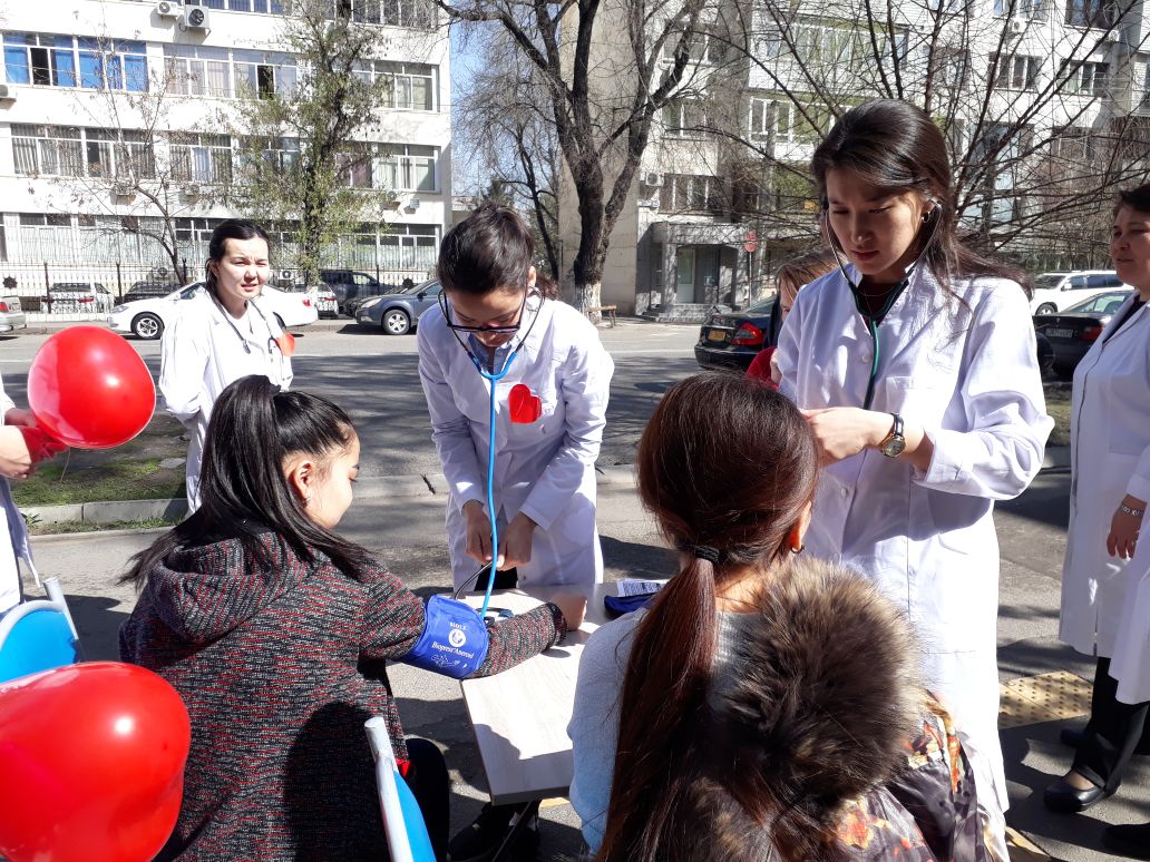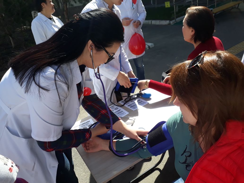 ЖМЖБ кафердасының ұйымының катысуымен «Ұлы отан соғысының ардагерлер» калалық емханасында    Бүкіләлемдік денсаулық  күніне орай ашық есік –  іс шарасы ұйымдастырылды. Оған м.ғ.д.,проф. Мусаев А.Т. , м.ғ.к., проф Ахметова Г.Д., м.ғ.к., доцент  Воднев В.П., м.ғ.к., доцент  Турсынмуратова Б.Е , ассистенттер: Жубатканова Ж.К Балканай Г. Б Шынтерекова А.Е. Мусаева Г.А. , Кундызбаева М.М ., және ЖМ 5 курс 020-1-2 топ студенттері,  екінші оқу жылындағы педиатр резиденттері катысты.