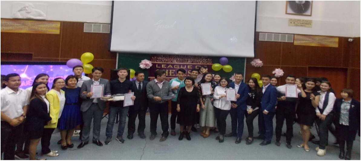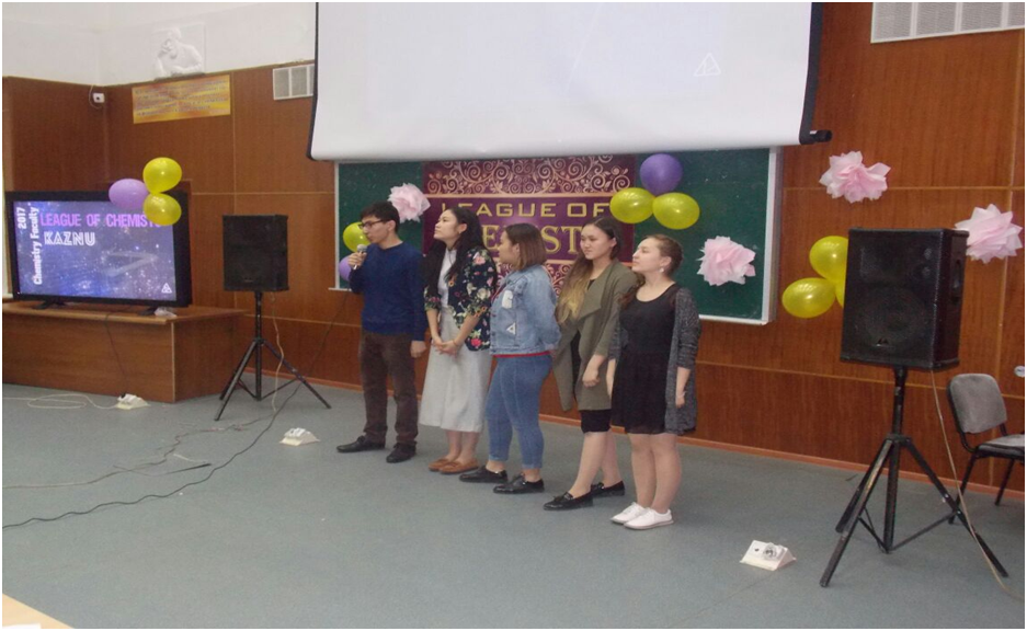 2017 жылдың сәуір айының 20-шы жұлдызында аль-Фараби атындағы Қазақ Ұлттық Университетінің химия және химиялық технология факультетінің дәріс залында физикалық химия, катализ және мұнайхимиясы кафедрасы мен С.Ж. Асфендияров атындағы Қазақ Ұлттық Медициналық Университетінің биологиялық химия кафедрасының және Қ.И. Сәтбаев атындағы Қазақ Ұлттық Техникалық Зерттеу Университетінің химиялық технология кафедрасы студенттері қатысқан «LEAGUE OF СHEMISTS» атты интеллектуалдық сайысы өтті.