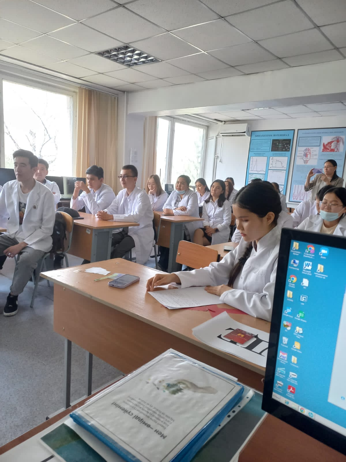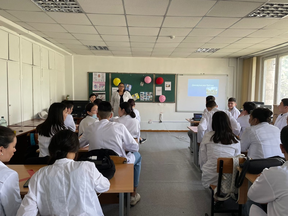 Дүниежүзілік денсаулық күніне орай 07.04.2022 күні «Биофизика курсымен қалыпты физиология» кафедрасының оқытушылары Алмабаева Н.М., Байдуллаева Г.Е., Усипбекова Д.И. «Жалпы медицина» мектебінің 1 курс, кураторлық топ студенттерімен біріге отырып «Денсаулық –зор байлық» тақырыбында дөңгелек стол өткізді. Топтың бөлінген екі топшасы:
