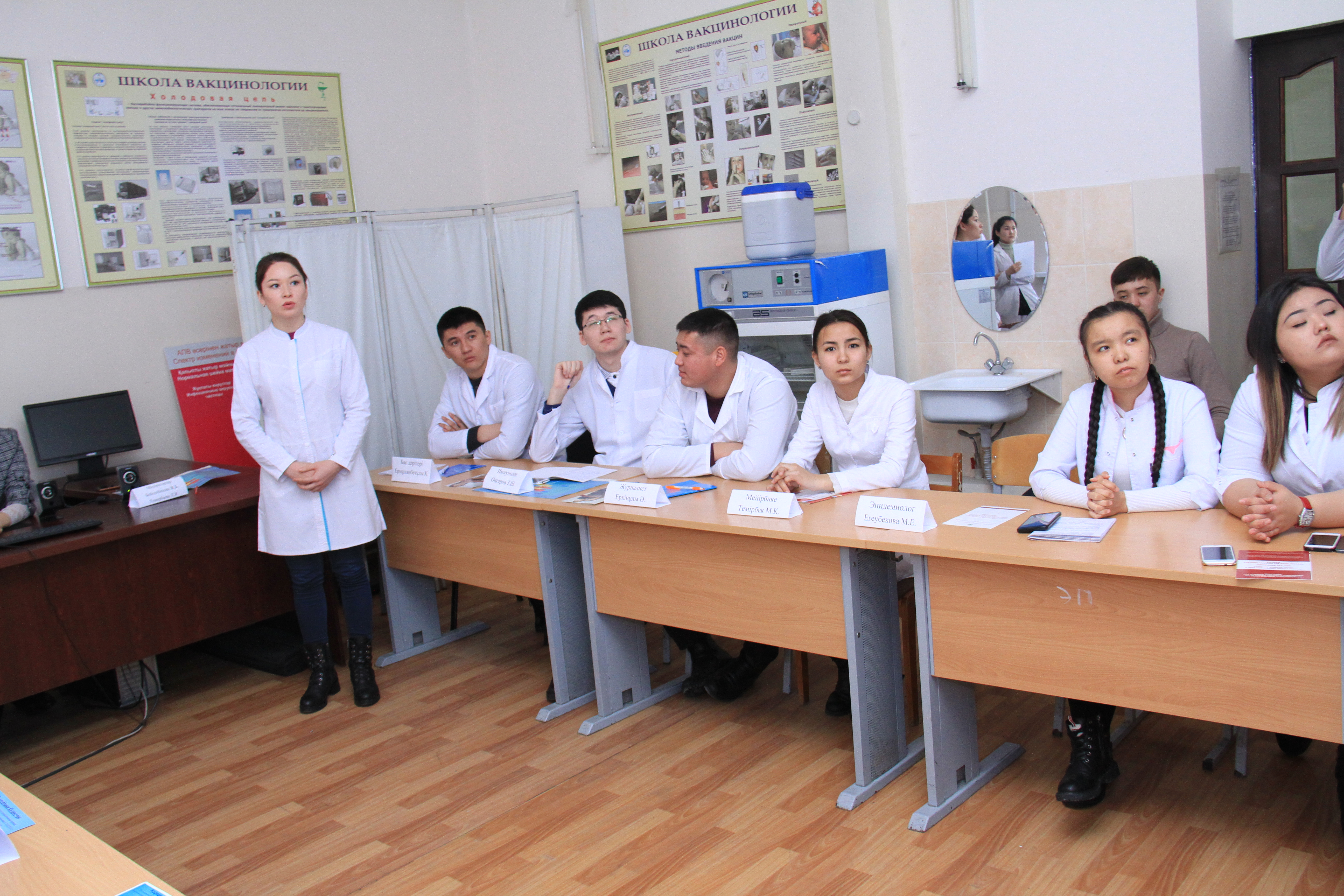 Ашық сабақта студенттер иммундық алдын алуды атқаратын болашақта өздері болатын дәрігерлердің рөлдерінде болып және олардың  жауапкершіліктерін сезінді.