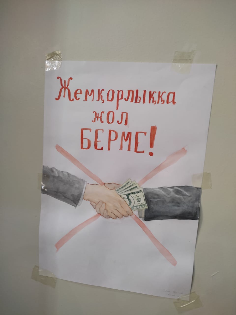 12. 2021 ж. күні №7 аудитория ғимаратында 2 аудиторияда сағат 10.00-де Тілдік пәндері кафедрасының оқытушылары ұйымдастыруымен «Халықаралық сыбайлас жемқолыққа қарсы күрес» күніне орай «Жемқорлық індет, жою мінднт» атты тәрбиелік іс- шара өткізді.