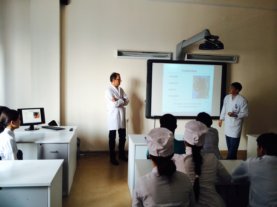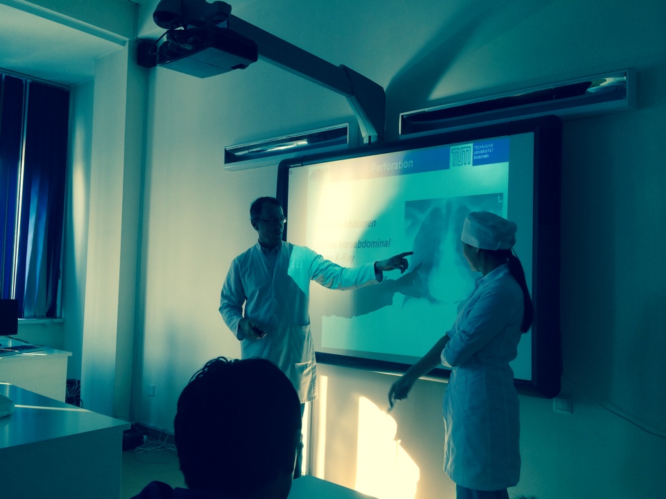В рамках привлечения ведущих зарубежных специалистов в качестве Визитинг-Профессоров с 28.11.2014 по 12.12.2014г. на кафедре «Хирургические болезни №1» Казахского Национального Медицинского университета им. С.Д. Асфендиярова провел обучающий семинар на тему «Мини-инвазивные и инновационные технологии в хирургической практике» доктор PhD, профессор Мюнхенского технического университета, (Германия, TOP100 по QS) Jorg Theisen.