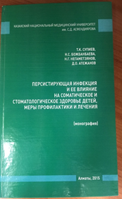 - Монография «Персистирующая инфекция и ее влияние на соматическое и стоматологическое здоровье детей, меры профилактики и лечения» Алматы, 2015г.