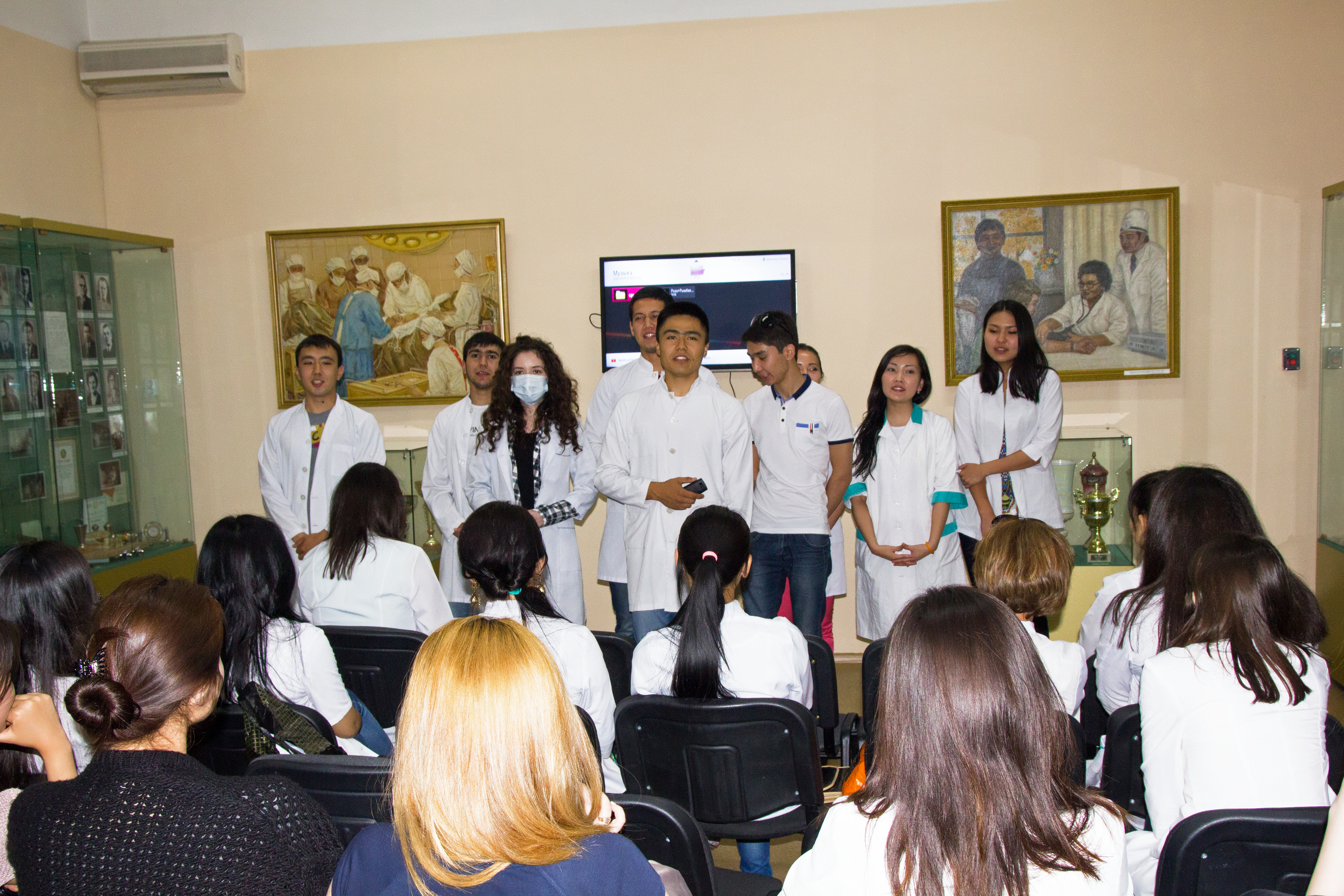 12 мая в музее КазНМУим. С.Д. Асфендияровабыл организован просмотр фильма «Письма с фронта».Затемстуденты исполнили песни военных лет на казахском и русском языках. Студентка ОМ 13-45 группы Дана Рысымбет подготовила содержательный доклад о женщине капитане, докторе медицинских наук,профессоре, одной из первыхженщин казашек патофизиологовМамановой Х.Е.