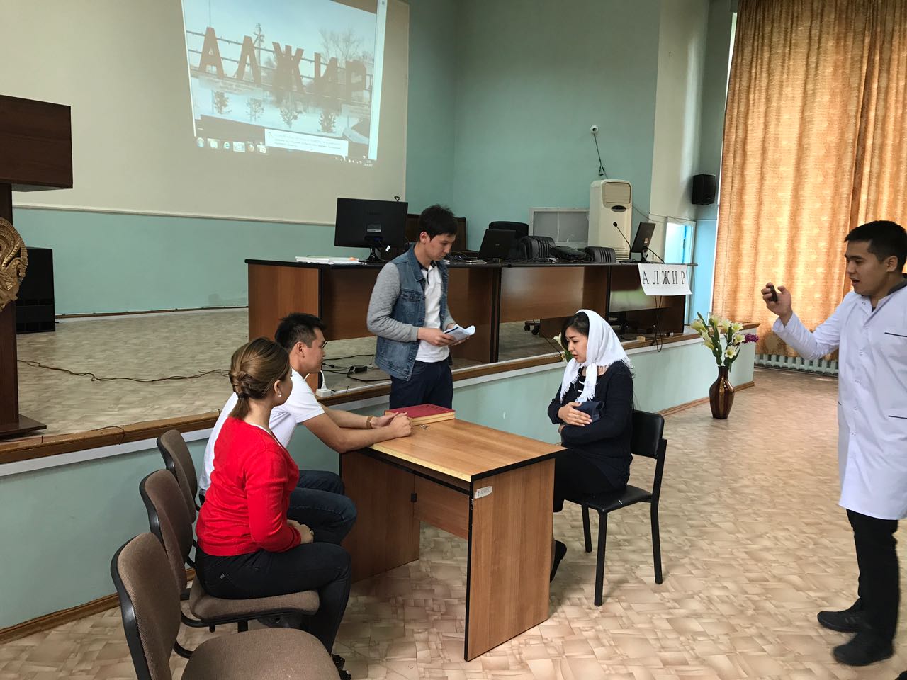 Интернами были подготовлены интересные и познавательные фильмы, рассказано о трагических судьбах женщин, о бескорыстной помощи казахского народа. 611 группа интернов ВОП показала сценку о судьбе Азизы Рыскуловой, которая тронула до слез и очень понравилась всем присутствующим.