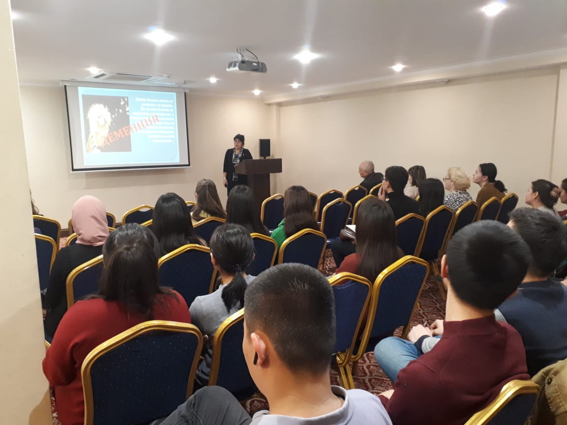 іс-шараға нейрохирургия курсымен жүйке аурулары кафедрасының меңгерушісі С. Т. Турыспекованың жетекшілігімен кафедра ассистенті Б. К. Демесинова және жалпы медицина факультетінің 5 курс студенттері М. С. Ахмет және А. Б. Жомартова белсенді қатысты. Ассистент Б. К. Демесинова “қазақ популяциясындағы 60 жастан асқан тұлғалар арасында орташа когнитивтік бұзылыстар скринингінің алғашқы нәтижелері” тақырыбында ғылыми баяндама жасады, ал біздің студенттер баяндамасының тақырыбы: “Артериялық гипертензиямен ауыратын науқастардағы когнитивтік функциялардың жағдайы” болды.