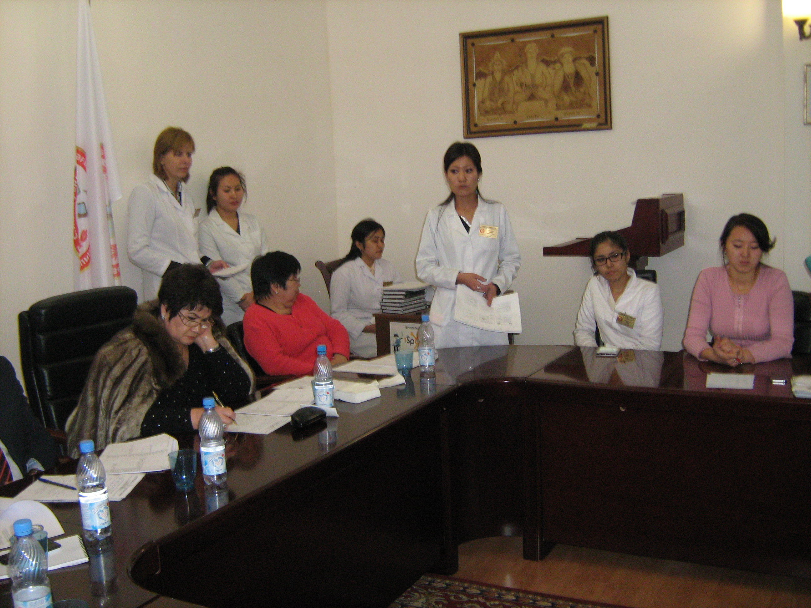 СҒҮ отырысында студенттермен бірге СҒЗЖ бойынша жауапты асс. Ергалиева А.А., доц.Оспанбекова Н.К., доц.Сейдулаева Л.Б. (сәуір, 2016 ж.)