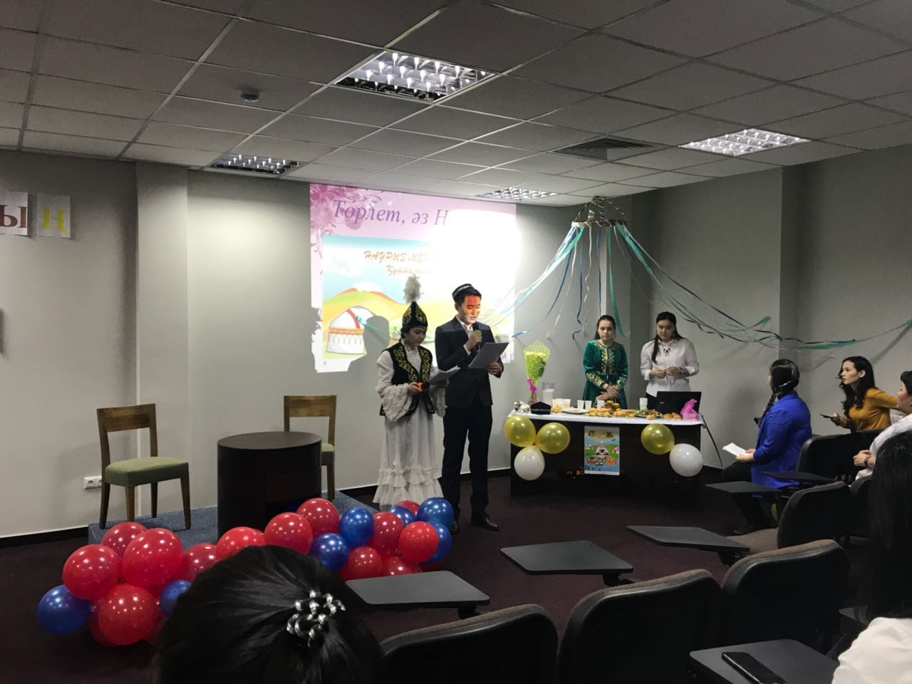Дөңгелек үстелде Наурыз мейрамының тарихы баяндалды. Студенттер өлең оқып,күй тартты. Қазақ халқының дәстурлеріне байланысты сұрақтар-жауап жүргізілді. Студенттер арасында қазақтың салтына сай айтыс ұйымдастырылды.