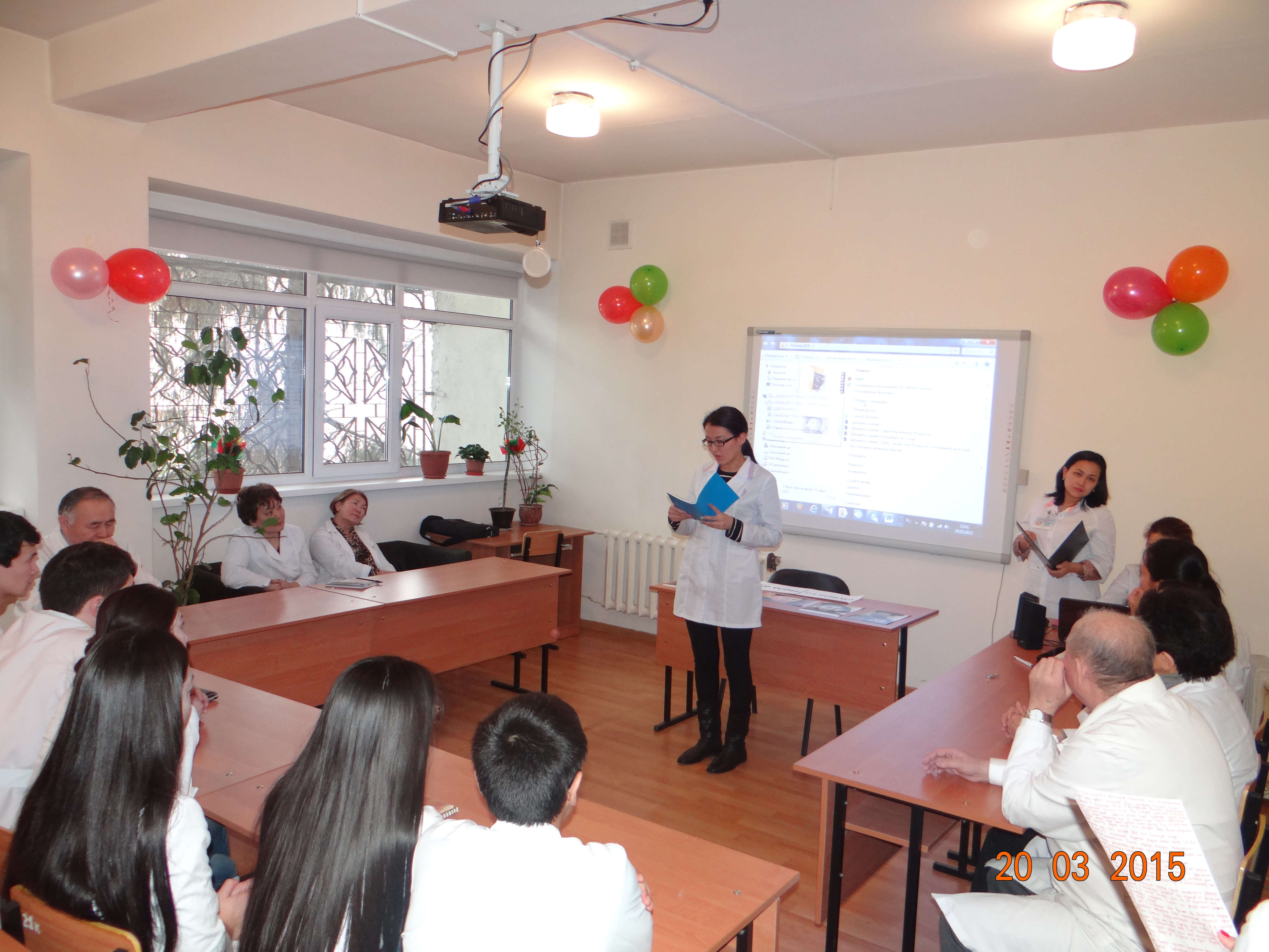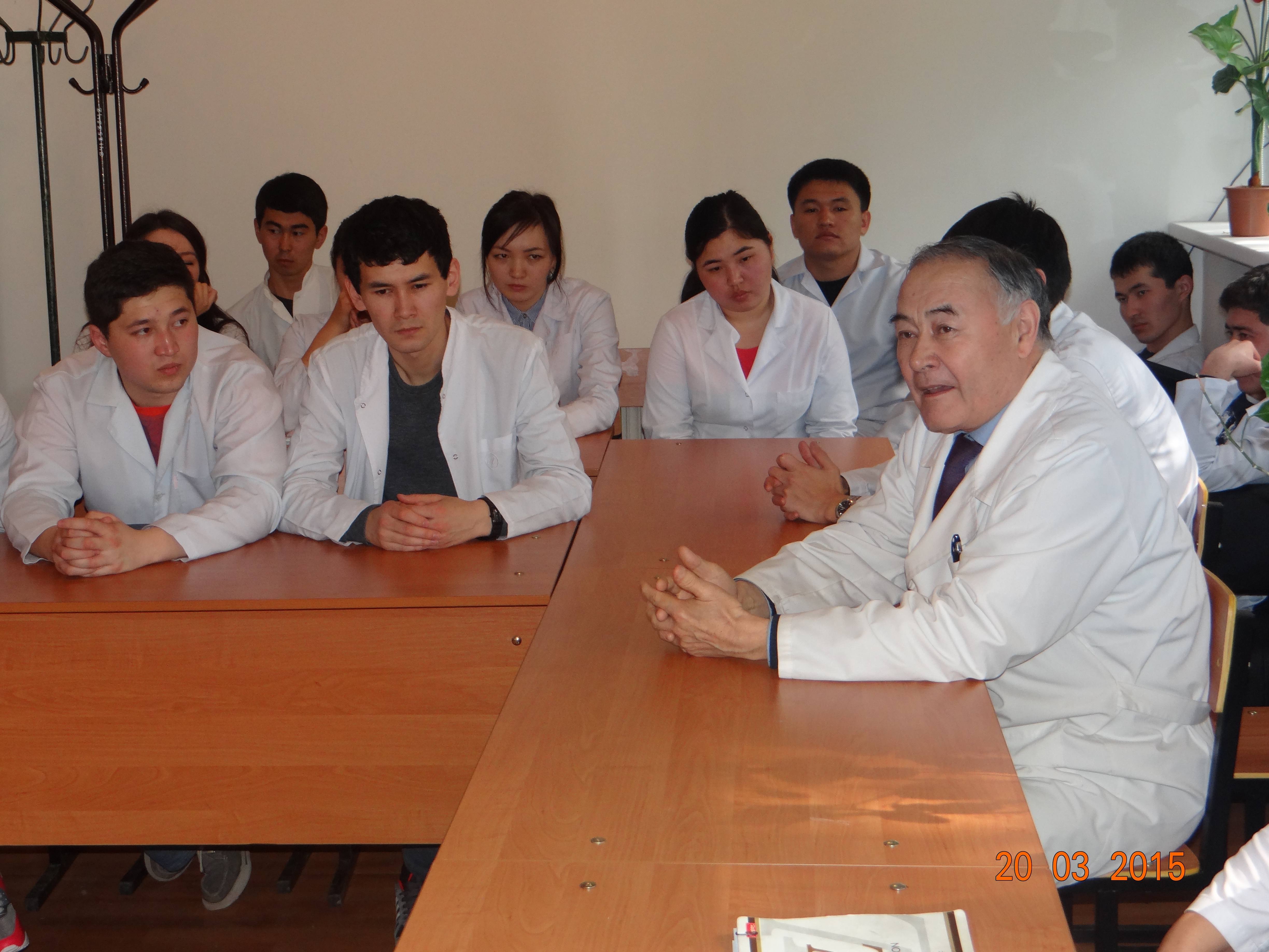 26.03.2015ж. “Біріктіріп оқыту орталығында” «Ұлы Отан Соғысы Жеңісіне 70 жыл» тақырыбына арналған дөңгелек үстел өткізілді. Дөңгелек үстелге  Ішкі аурулар пропедевтикасы кафедрасы мен патологиялық физиология модулі қызметкрелері және ЖМ факультетінің 3 курс 20, 26, 27 топ студенттері қатысты. Дөңгелек үстел бағдарламасы бойынша, сөз алғандар: Ішкі аурулар пропедевтикасы кафедрасының меңгерушісі, «Біріктіріп оқыту орталығы» басшысы, профессор Г.М.Есенжанова, ішкі аурулар пропедевтикасы кафедрасының  асссистенттері Сулейменова А.С., Намазбаева Ж.Е., патологиялық физиология модулі ассистенті Ермаганбетова А.Ш., студенттер қауымынан өнер көрсетіп, баяндамалар мен өлең шумақтарын оқығандар: Ташимова Д. Рахмет Е., Абдашева М., Батырова Г., Берлибаева І., Төлеуова Б.. Бағдарлама бойынша ҰОС туралы бейнетаспалар тамашаланып, Левитан мен Б. Момышұлы сөздерінен үзінділер , «Мәншүк Маметова өмірбаяны» тақырыбына  презентация тыңдалды.