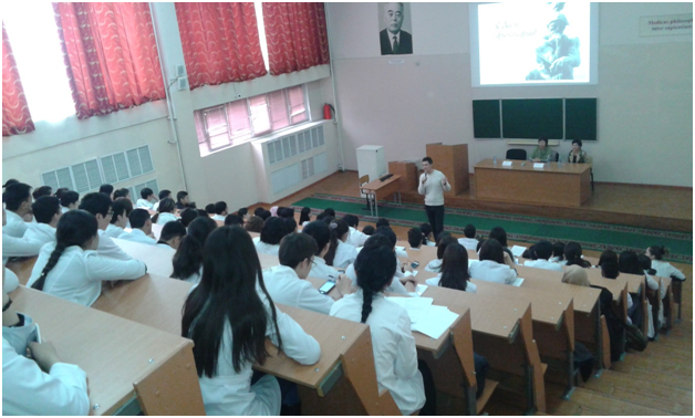 В целях реализации тематического плана по НИРС преподавателями секции «Философия» кафедры «История Казахстана и социально-гуманитарные дисциплины» было проведено мероприятие, посвященное Всемирному Дню философии. В рамках данного события была организована встреча студентов с известным философом современности к.ф.н., доц. КазНУ им. Аль-Фараби Борецким О.М. Дата проведения назначена на 20.11.14 в 12.00 в аудиторном корпусе в 4 лекционном зале. В ходе встречи было отмечено, что с 2002 года по регламенту ЮНЕСКО идея учреждения Всемирного дня философии заключается в том, чтобы найти общую платформу обсуждения происходящих в обществе глобальных социокультурных преобразований, приобщить людей к философскому наследию, приоткрыть сферу обыденного мышления для новых идей и стимулировать публичные дебаты мыслителей и гражданского общества по поводу вызовов, встающих сегодня перед обществом. В данном контексте была проведена увлекательная беседа, оставившая в восприятии студенческой молодежи только приятные впечатления.