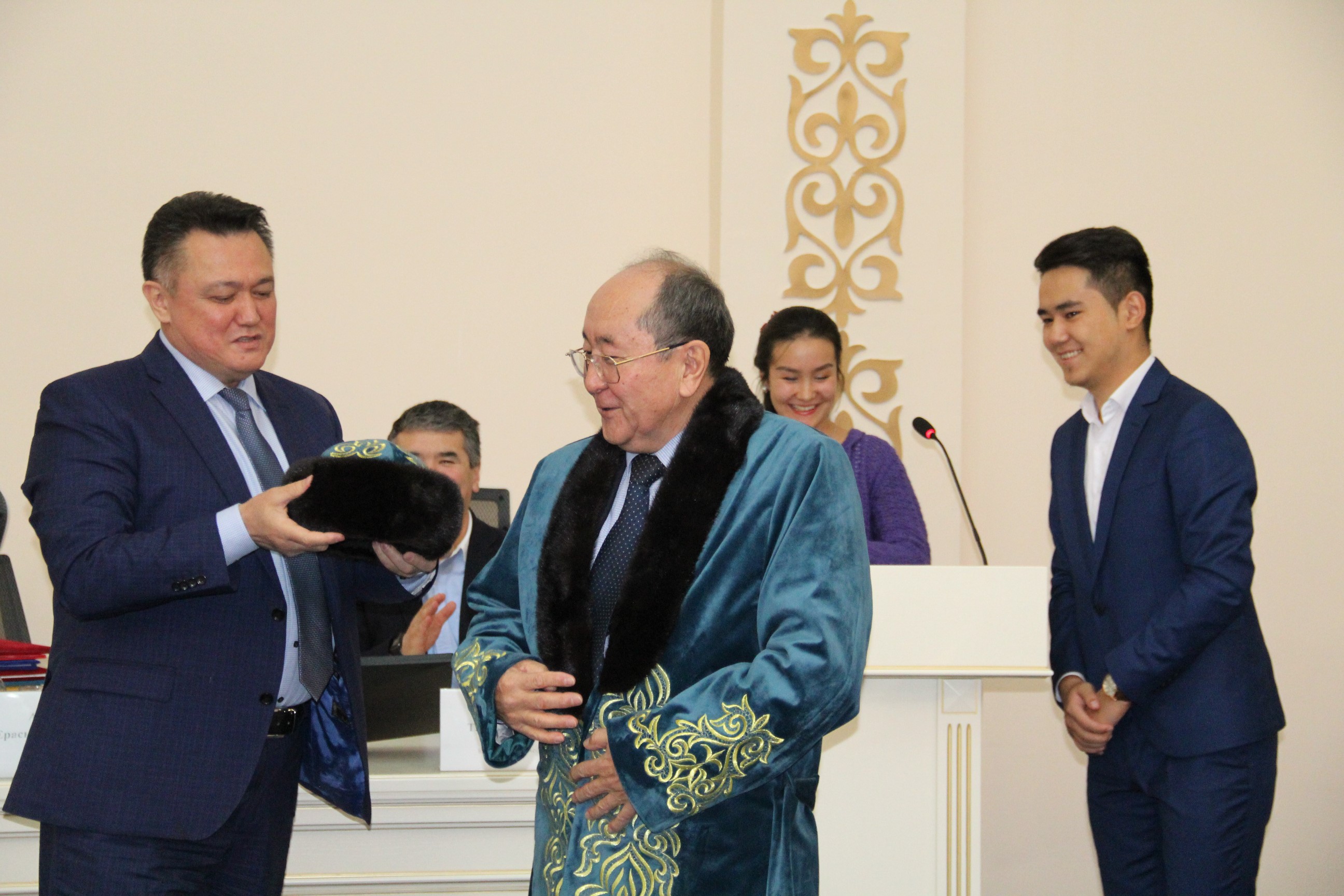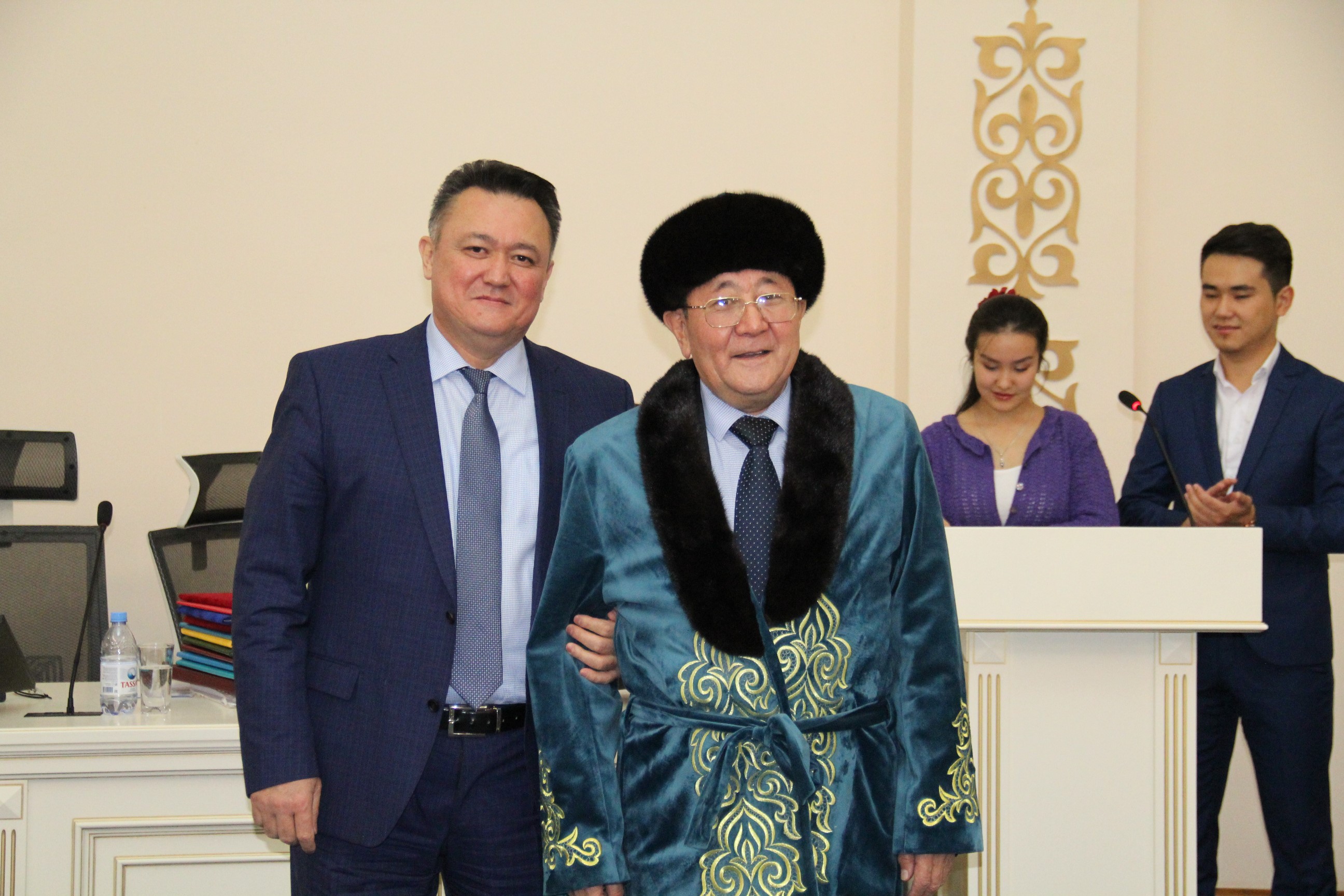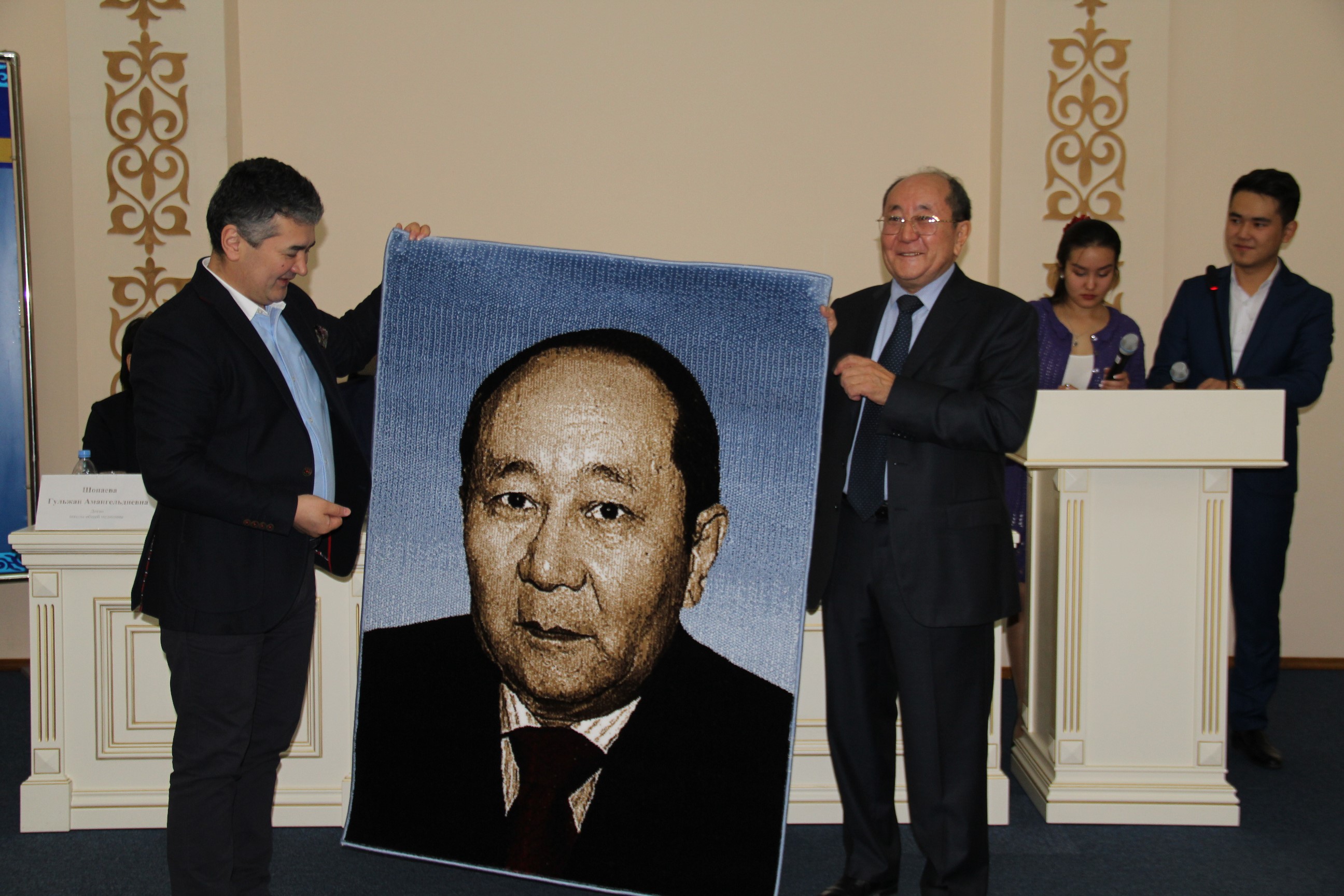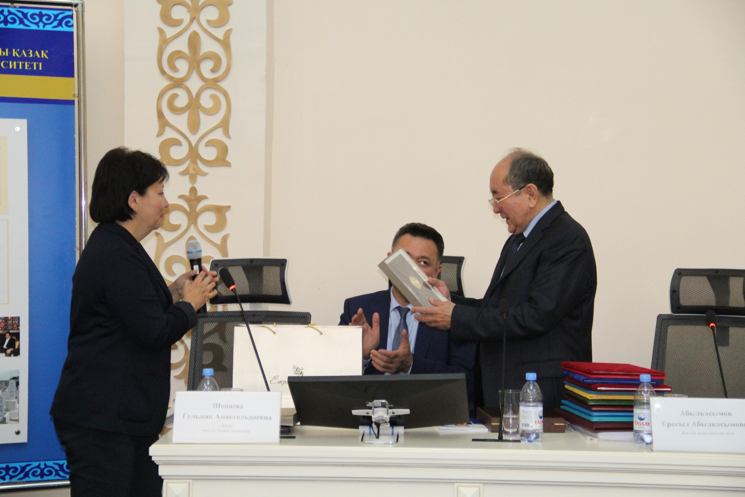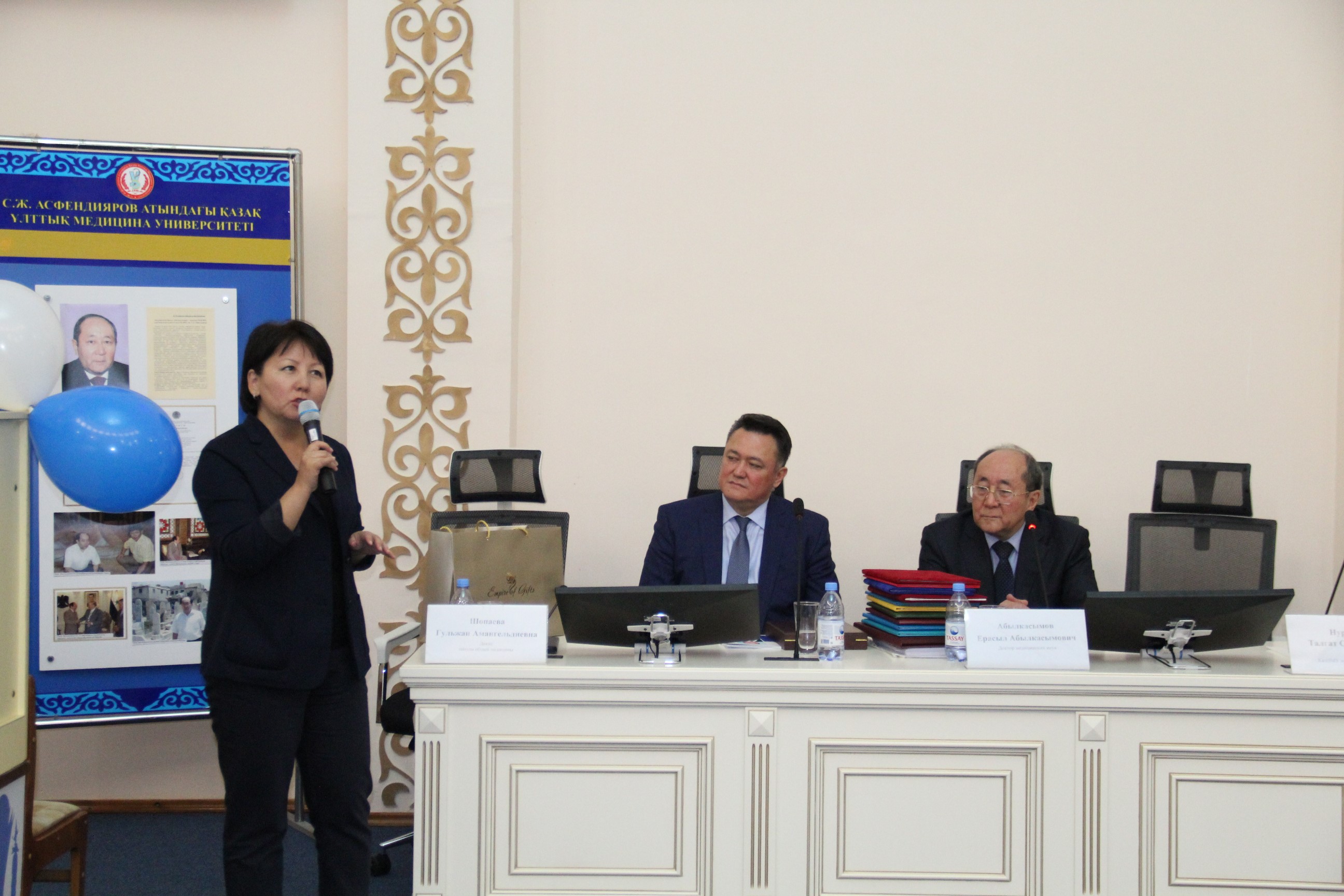 С поздравительным словом выступил ректор КазНМУ им.С.Д.Асфендиярова д.м.н., профессор Нургожин Т.С., а также гости – ректор Казахско-Российского медицинского университета д.м.н., профессор Джайнакбаев Н.Т., директор филиала фонда социального медицинского страхования по г.Алматы, д.м.н. профессор Абильдаев Т.Ш.