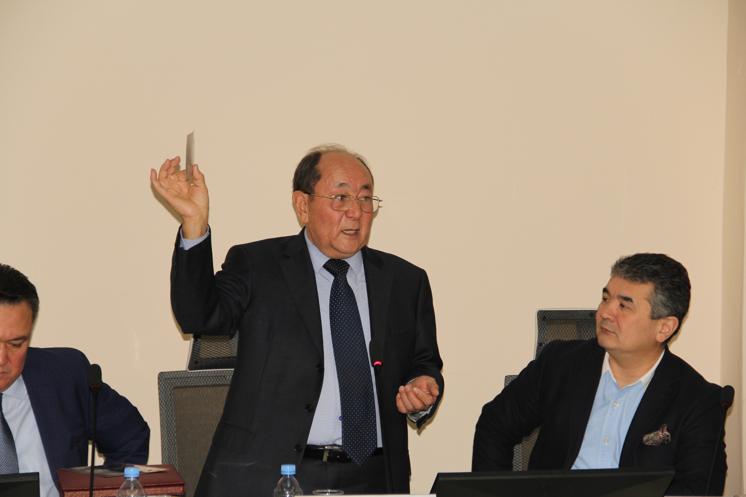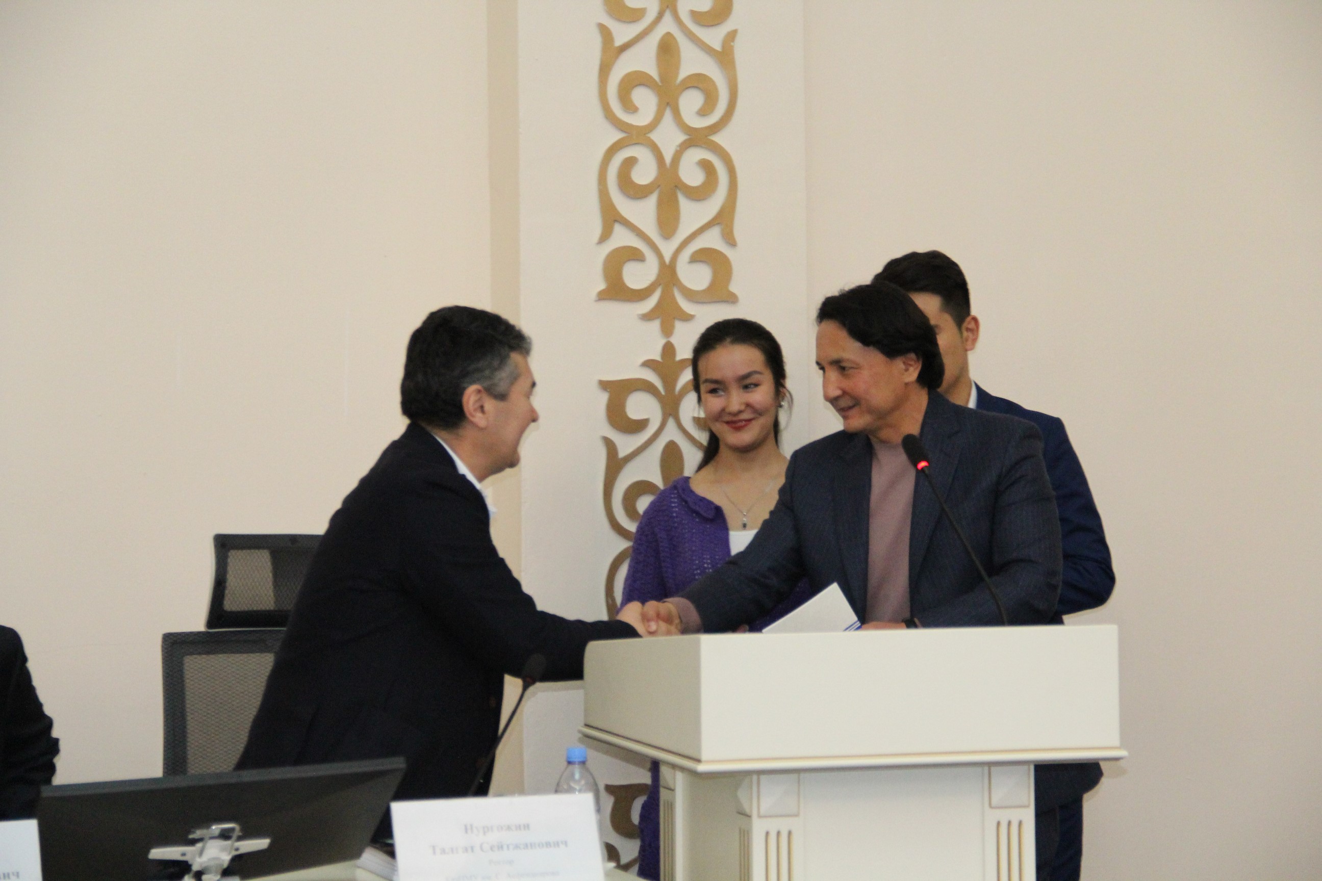 Профессор Ерасыл Абылкасымович рассказал студентам о жизненных этапах своей государственной и общественной деятельности, о достижениях на этом пути, о преодолении трудностей, о постоянном стремлении к знаниям, постижению нового, движению вперед.