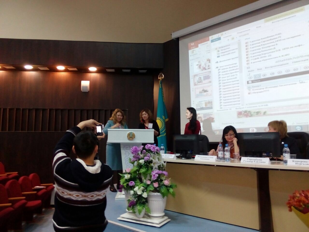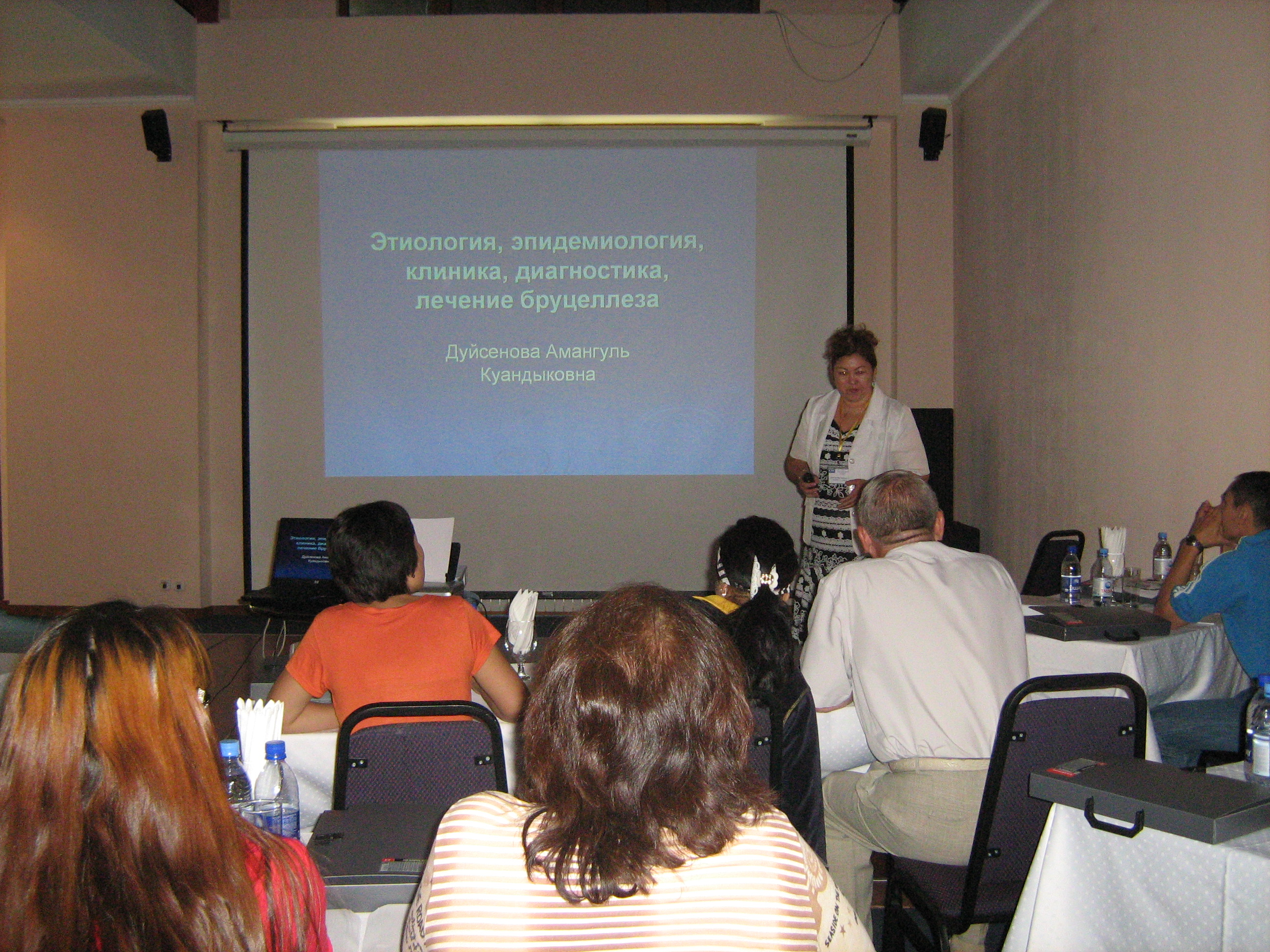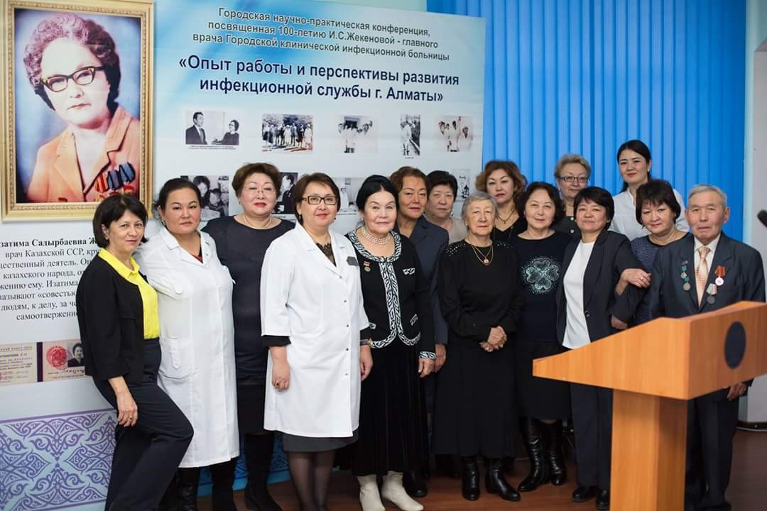 Кафедра қызметкерлері И. С. Жекенованың 100 жылдық мерейтойына арналған «Алматы қаласының жұқпалы аурулар қызметінің жұмыс тәжірибесі және даму перспективалары» атты қалалық ғылыми˗тәжірибелік конференциясында. (Алматы, 2016 ж.)