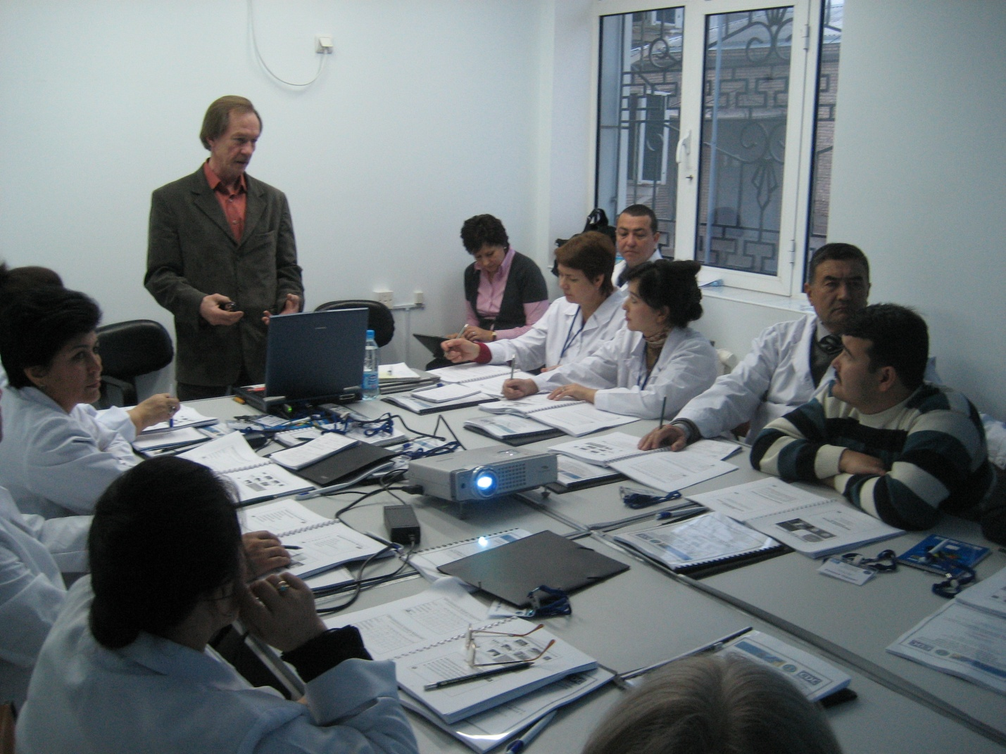 Проф.Дмитровский А.М. СДС Орта-Азиялық кеңсесінің «Аса қауыпты инфекцияларды стандарты анықтау» атты семинарын өткізуде.
