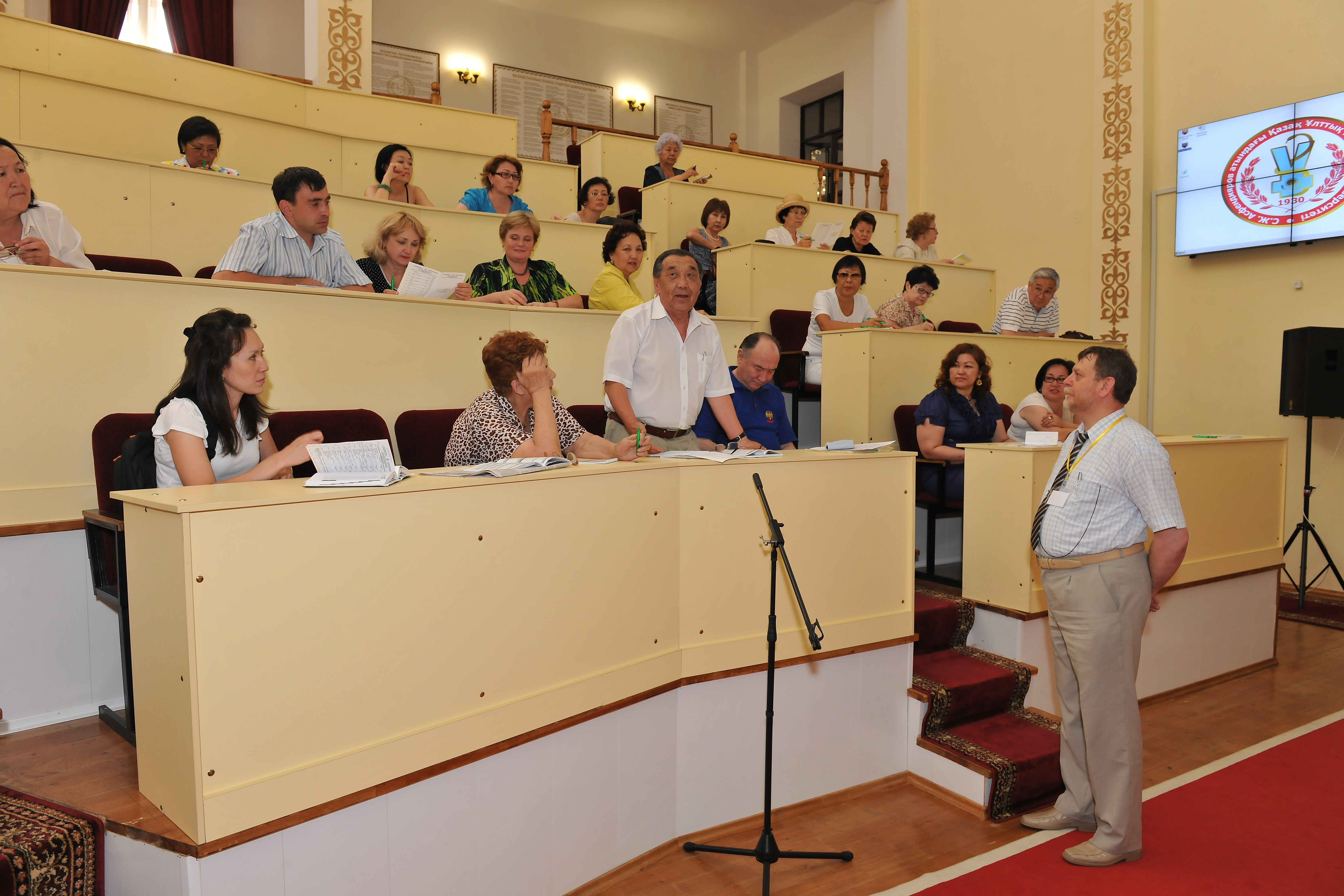 Проф.Егембердиева Р.А. «Актуальные проблемы эпидемиологии, микробиологии, природной очаговости болезней человека» ғылыми тәжірибелік конференциясында баяндама жасауда, Ресей, Омск