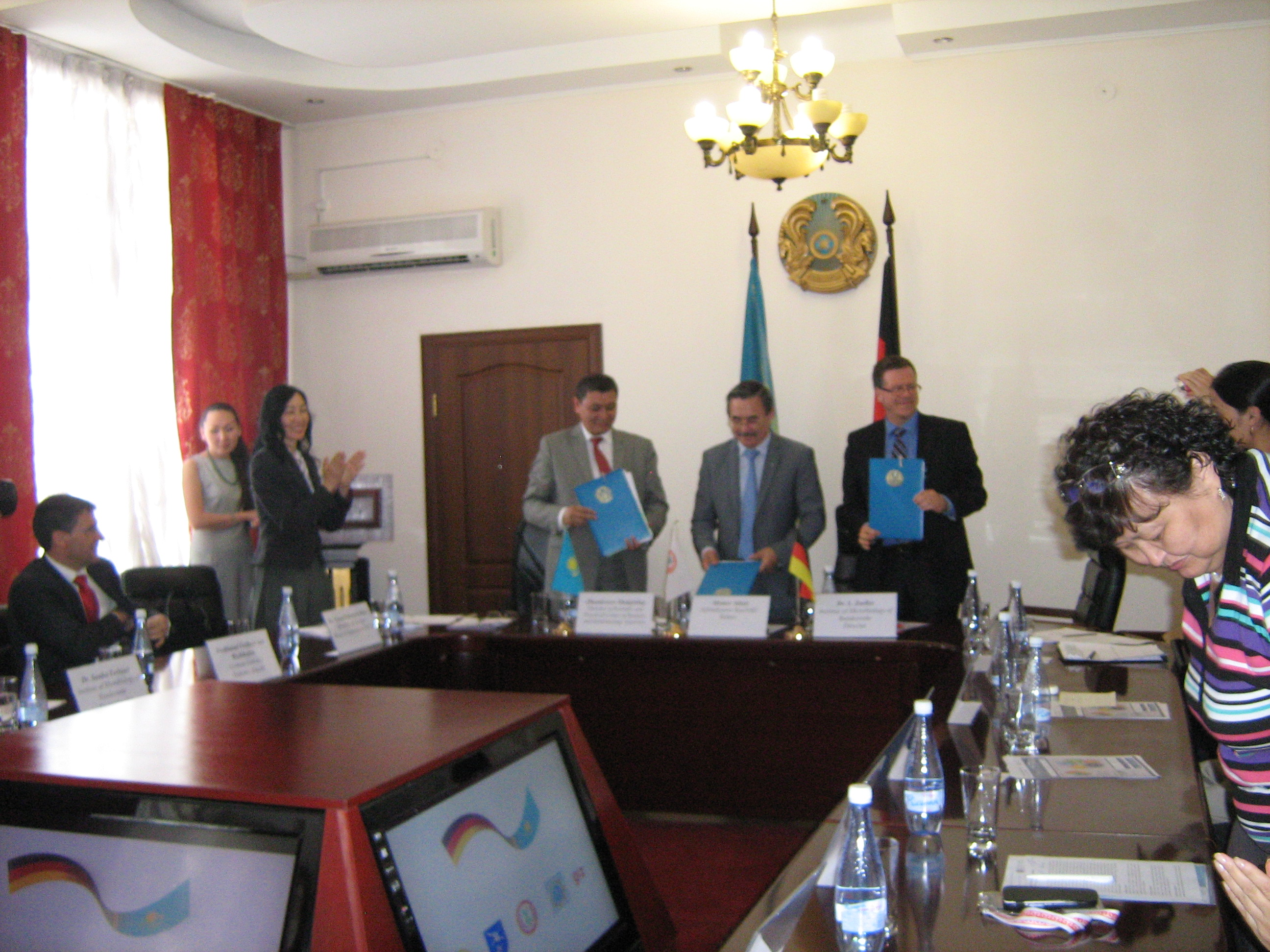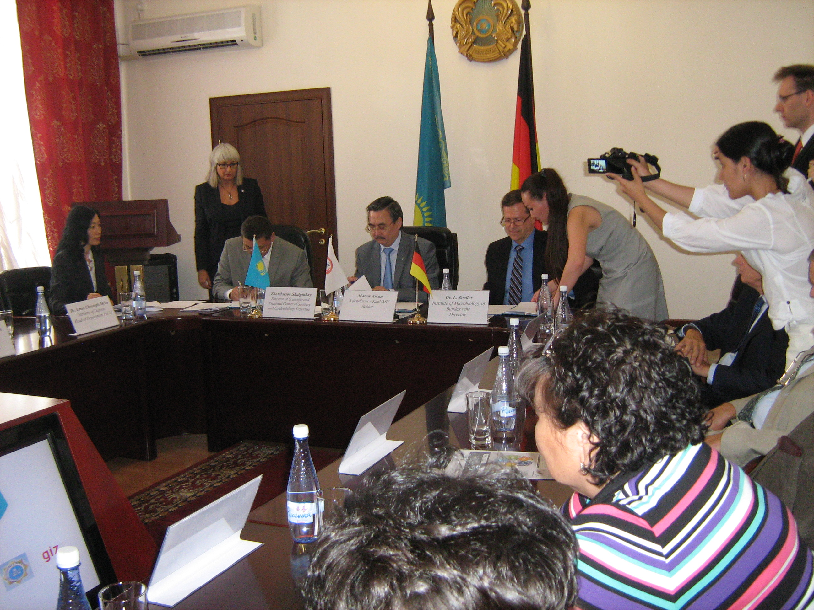 ҚазҰМУ, ҚР НПЦСЭЭМ КЗПП МНЭ мен Бундесвер микробиология институты (Германия) арасында ғылми қызмет атқару туралы Меморандумға қол қою рәсімі