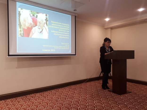 Заведующая кафедрой Туруспекова С.Т. – Европейские стандарты диагностики и лечения когнитивных нарушений и деменции при цереброваскулярных и нейродегенеративных заболеваниях.