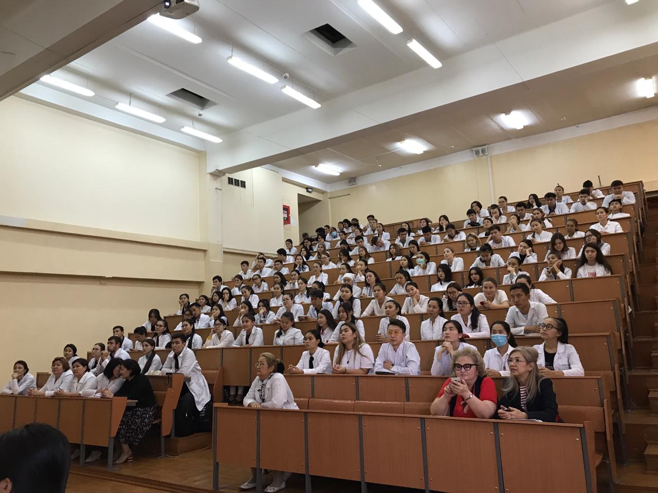 27.09.2019 г. в аудитории №8 под руководством деканата Школы общей медицины проведено обсуждение Послания Президента с участием профессорско-преподавательского состава кафедры нормальной физиологии: заведующей кафедрой, доцента Рыспековой Ш.О., доцента кафедры Жетписбаевой Г.Д., лектора кафедры Джусипбековой Б.А., Шайхынбековой Р.М., Артыкбаевой У.С., Алипбековой А.С.; профессорско-преподавательского состава кафедры гистологии: заведующей кафедрой, доцента Ергазиной М.Ж., лектора кафедры Алсеитовой Ф.Д., ассистента кафедры Омаровой Р.С., а также студентов 2-го курса Школы общей медицины. В организации мероприятия приняли участие декан Школы общей медицины Шопаева Г.А., заместители декана Школы общей медицины Измайлова С.Х., Матмуратова Б.К., Мукашева М.С., Ильясова А.Д., Орадова А.Ш., Курмангалиева Ж.Ж.; специалисты Школы общей медицины Ансаганова Ж.А., Маймакова А.М., Исаева М.Н., Тусупбекова Э.К..