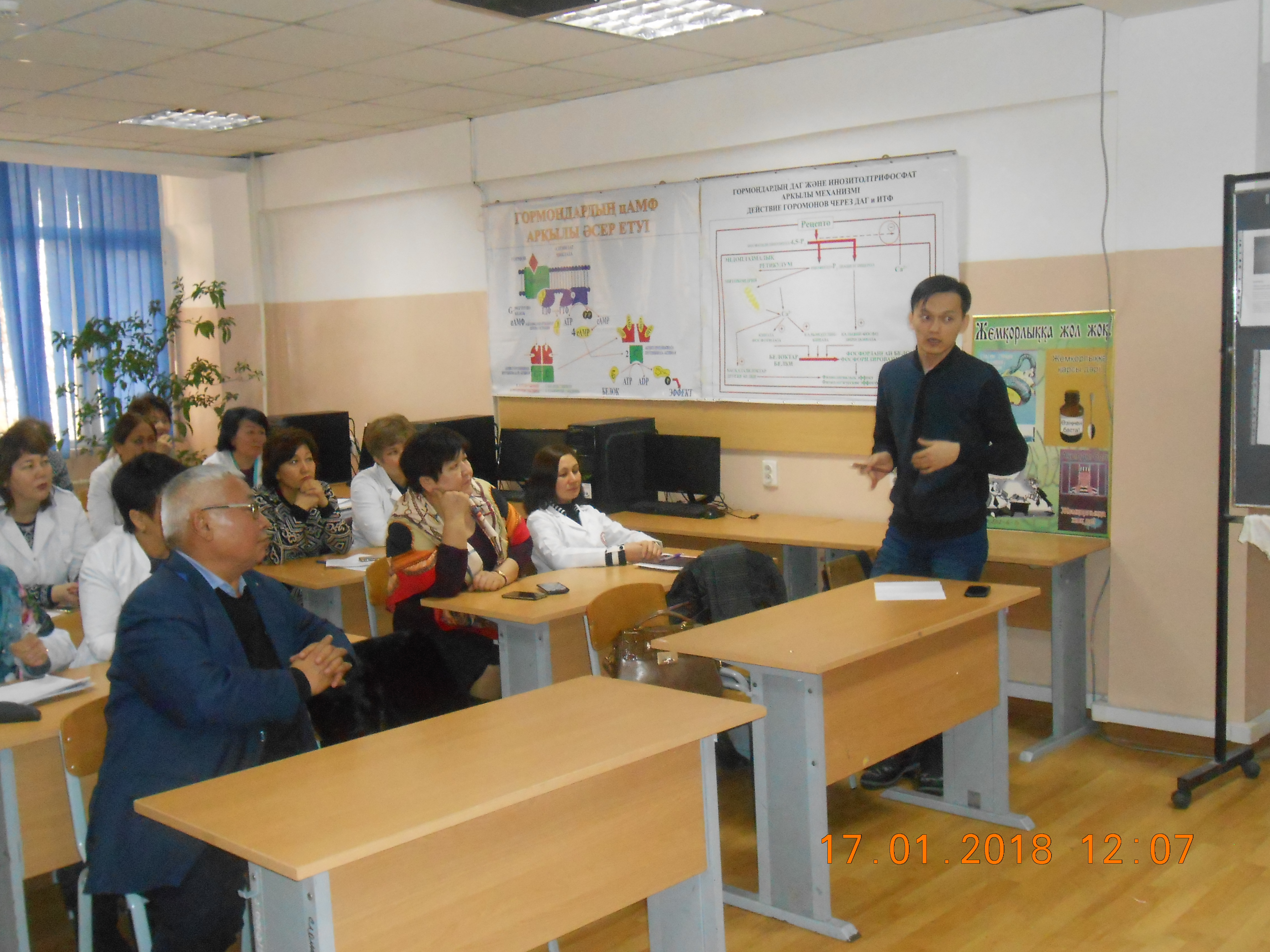 17 января 2018 года в КазНМУ им. С. Д. Асфендиярова на кафедре биохимии и химии состоялось обсуждение Послания Главы государства Н.А.Назарбаева народу Казахстана «Новые возможности развития в условиях четвертой промышленной революции» с участием советника ректора  Мустафиной Г.Г.,  преподавателей по правоведениюБогатыревойЛ.Б. и ИспаевойГ.Б., профессорско-преподавательского состава кафедры, докторантов,  и студентов вуза.