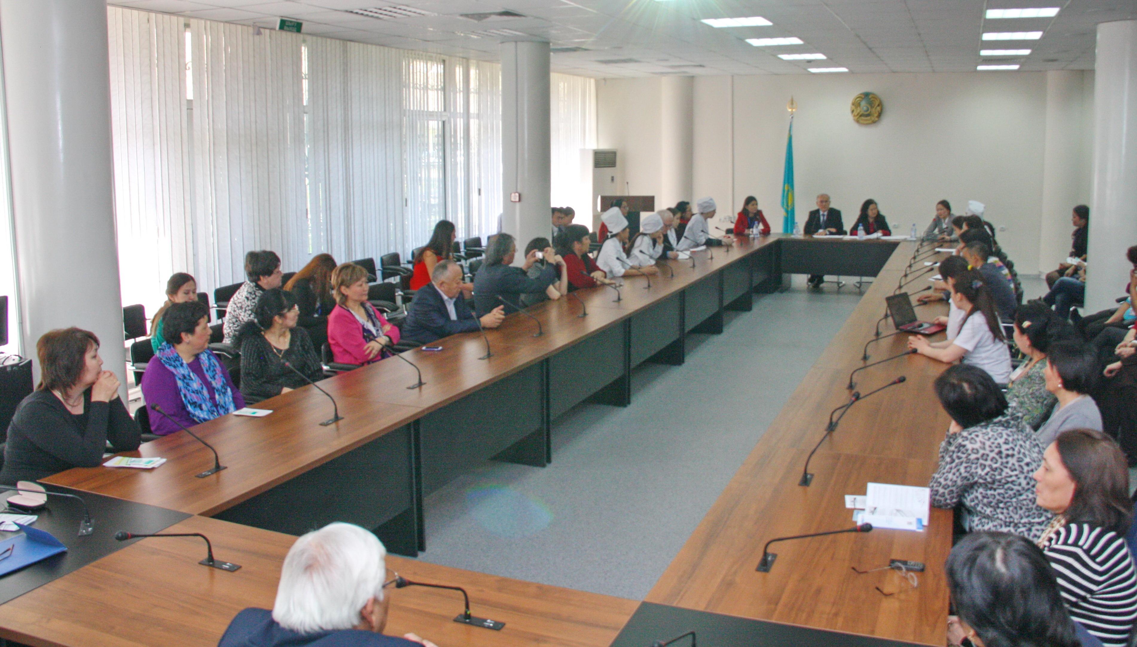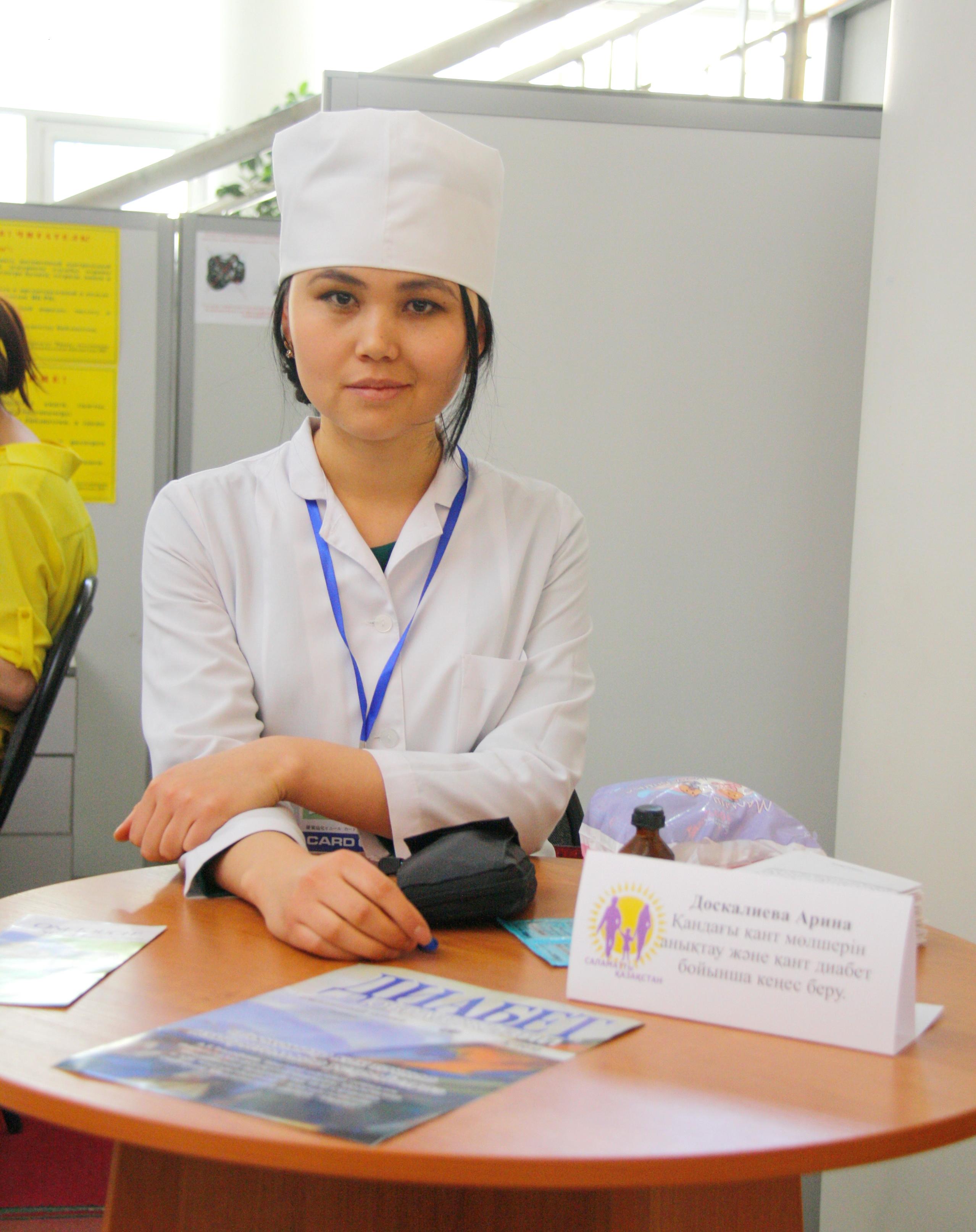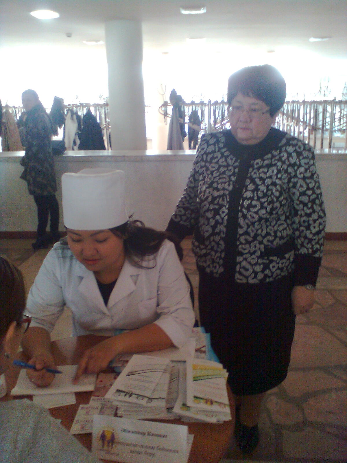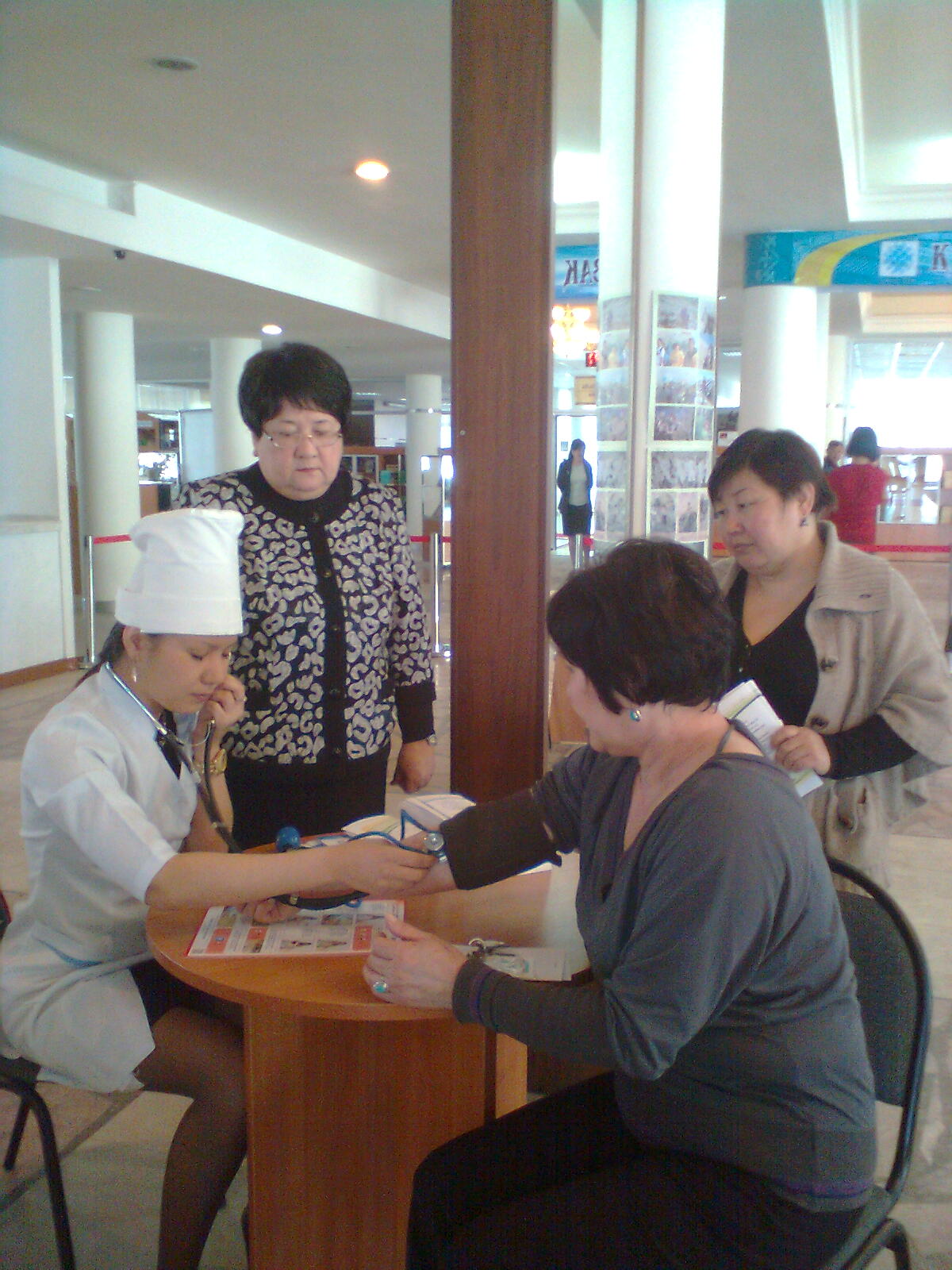 За 20 лет независимости в Казахстане отмечается системное развитие здравоохранения по всем направлениям. Реализация Государственной программы «Саламатты Қазақстан» позволит поднять медицину на качественно новый уровень в соответствии с мировыми стандартами. В рамках программы «Саламатты Қазақстан» руководством Национальной библиотеки РК и КазНМУ им. С.Д. Асфендиярова проведена выставка современной медицинской литературы с организацией круглого стола. Вначале открытия выставки студенты 3 курса Общей медицины провели доврачебный осмотр всех желающих – измеряли артериальное давление, давали рекомендации по гигиене ротовой полости, кожи, правилах питания и поддержке здорового образа жизни, определяли вес и рост, тестовый контроль содержания сахара и проверяли остроту зрения. Директор Республиканской  научной  медицинской библиотеки Ананбаев И.А. выступил с речью – «Самое большое достояние  человека это здоровье и чтобы сберечь здоровье у человека должны быть большие знания в медицине и все это есть в книгах. Я считаю неправильным мнение, что если есть интернет, то книги не нужны. Книги сохраняются тысячелетиями. В библиотеке есть книги  которым больше 200 лет. Дорогие читатели, в нашей библиотеке более 355 000 книг, каждой из них по 2-3 экземпляра, так что приходите и пользуйтесь этим драгоценным даром. Хочу сказать спасибо руководству КазНМУ им. С.Д. Асфендиярова, советнику ректора по воспитательной работе д.м.н., проф. Мустафиной Ж.Г. и всем тем, кто принимал участие в организации этой выставки, всего вам хорошего!». Затем было торжественное открытие выставки с обрезанием ленточки (Құлманбетов И.І., Оспанова Б.К., Мустафина Ж.Г.). После этого всех присутствующих пригласили посмотреть выставку книг. Далее всех пригласили за круглый стол (председатели круглого стола – Құлманбетов И.І. и Мустафина Ж.Г.). Профессор Мустафина Ж.Г. в своей вступительной речи отметила следующее – «Программа Саламатты Қазақстан закончится  в 2015 году. Среди народа не хватает информации, нет должной агитации этой программы, недооценивается  значение  профилактики, нет достаточных публичных лекций. В этой связи хотелось отметить инициаторов акции преподавателей модуля нормальной анатомии, особенно руководителя модуля Дюсембаеву А.Т. и завуча модуля Абилову А.А., а также студентов 3 курса Общей медицины. Активно участвовали наши студенты – активисты, лидеры, наше будущее. Большое спасибо всем преподавателям университета, колледжа, работникам библиотеки за участие в открытии книжной выставки и проведении круглого стола». Студенты 3 курса Общей медицины выступили с докладами. В ходе дискуссии проф. Құлманбетов И.І. отметил – «Наши дети сидят в компьюторах, отдаляются от внешнего мира, не читают книги, а ведь это наше будущее. Кроме того, необходимо обратить внимание на питание, лечебное действие наших народных традиционных блюд, таких как талқан. Необходимо улучшить питание и эти вопросы нужно поднимать». В конце круглого стола все участники отметили, что наше здоровье и  здоровье близких в наших руках, нельзя халатно относиться к своему здоровью и тогда все мы будем здоровы.