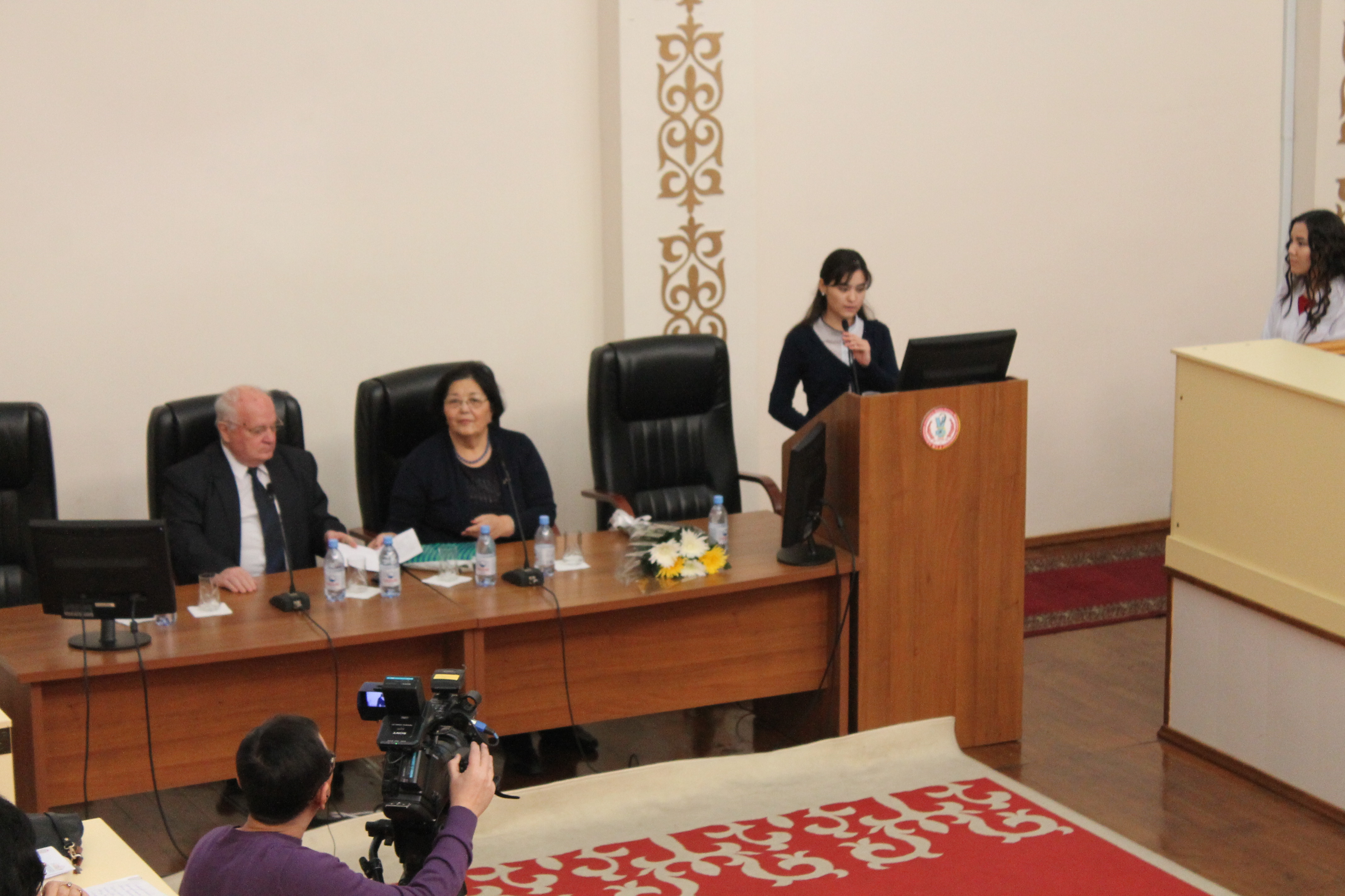 Проректор по учебно-воспитательной работе Тулебаев К.А. открыл конференцию приветственной и поздравительной речью и представил президиум и приглашенных гостей.