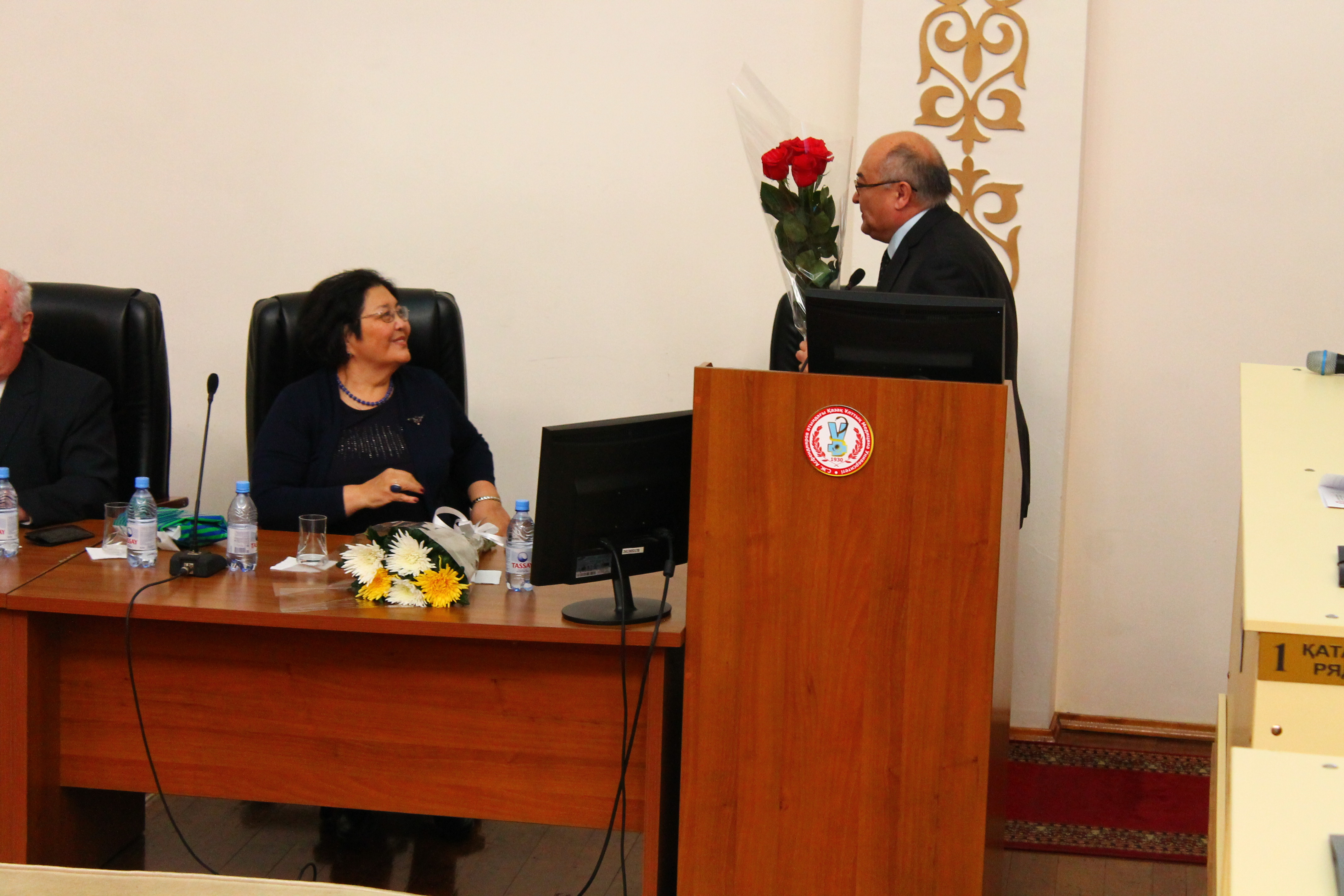 После открытия конференциис приветственной речью от имени всех учеников профессора Беремжановой И.А. выступил почетный профессорКазНМУ Соколов А.Д. в которой было рассказано о проведении научной деятельности кафедры нормальной физиологии в годы заведования профессором Беремжановой И.А.