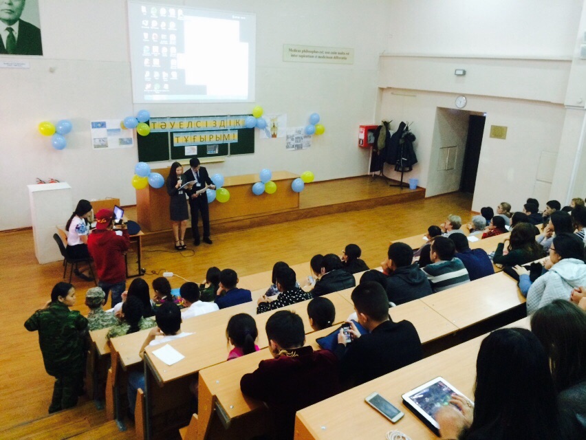 24 ноября 2015 года студентами 13-028-01 группы III курса факультета «Общая медицина» под руководством ППС модуля нормальной физиологии был организован и проведен праздник, посвященный Дню Независимости Республики Казахстан «Тәуелсіздік – тұғырым» в аудитории №4 с приглашением проректора по учебно-воспитательной работе К.А.Тулебаева, начальника управления по воспитательной и социальной работе М.Т.Султановой, директора департамента «Базовых дисциплин» К.К.Мустафиной, директора центра интегрированного обучения Г.М.Есенжановой, начальника ОП и КУП (учебная часть) К.Е.Куангалиевой, декана факультета «Общая медицина» Р.Т.Джумашевой, сотрудников деканата факультета «Общая медицина»: заместителя декана 3 курса и по воспитательной работе Ж.Ж.Курмангалиевой, руководителя модуля гистологии Н.М.Тусуповой. Ответственные за мероприятие и студенты 13-028-01 группы III курса факультета «Общая медицина» показали обычаи, национальную одежду и украшения казахского народа, любовь к Родине, чувство патриотизма, что и явилось целью проведенного вечера.