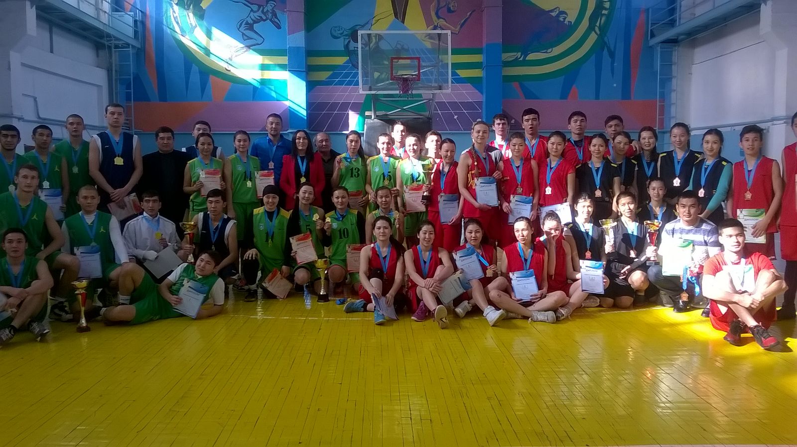 Всоревнованиях по баскетболу (мужчины и женщины).КомандаКазНМУ мужчины и женщины занялипризовое 3 место. Тренеры: ст. преподаватель Талгат А и ст. преподаватель Бауыржан Ж.