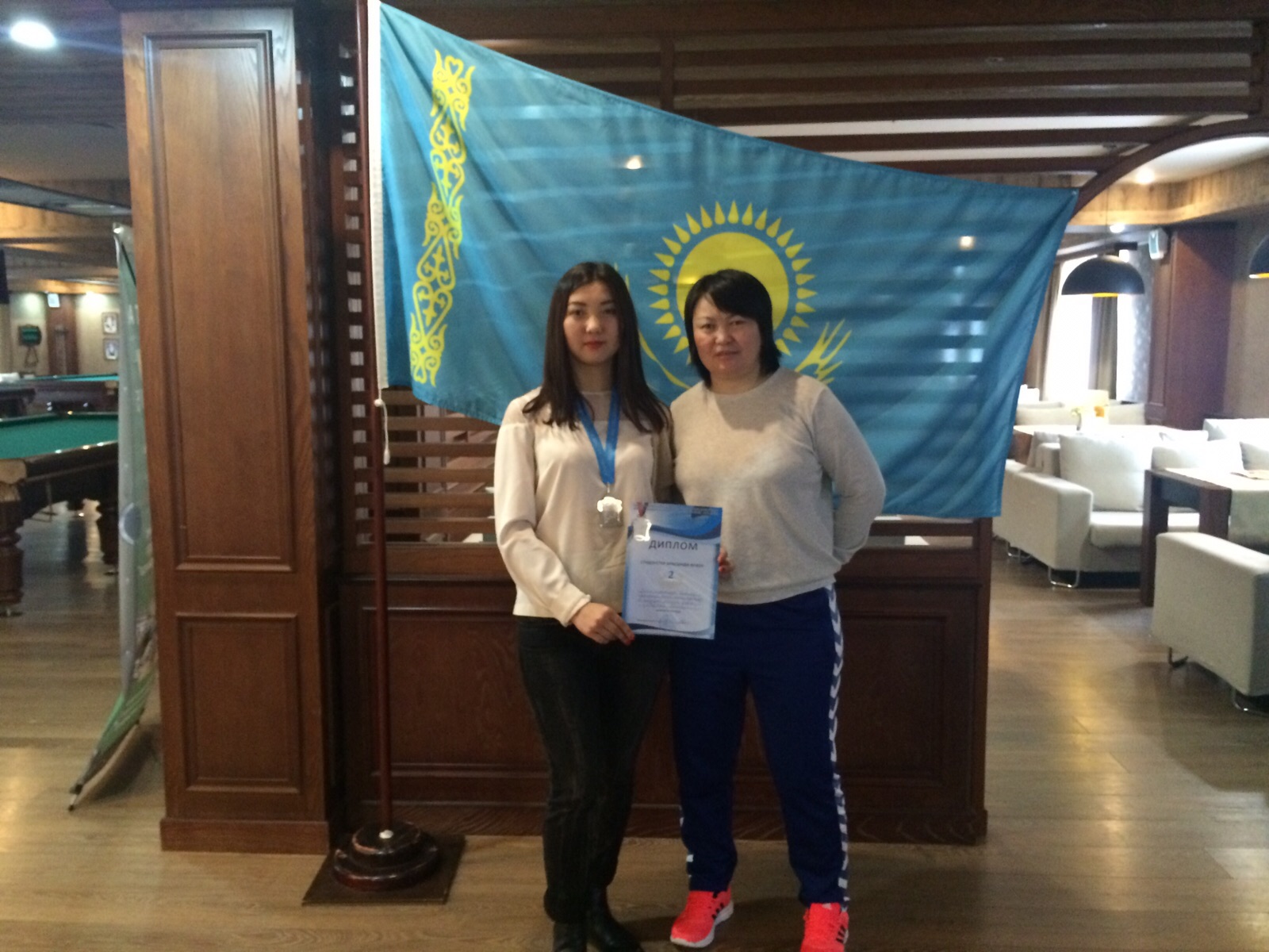 Воткрытом Республиканском турнире среди студентов по бильярдному спортустудентка ІІ курса факультета общей медицины Бозтай Балнұр заняла 2 место в личном зачете. Тренер ст. преподаватель Кален Ф.