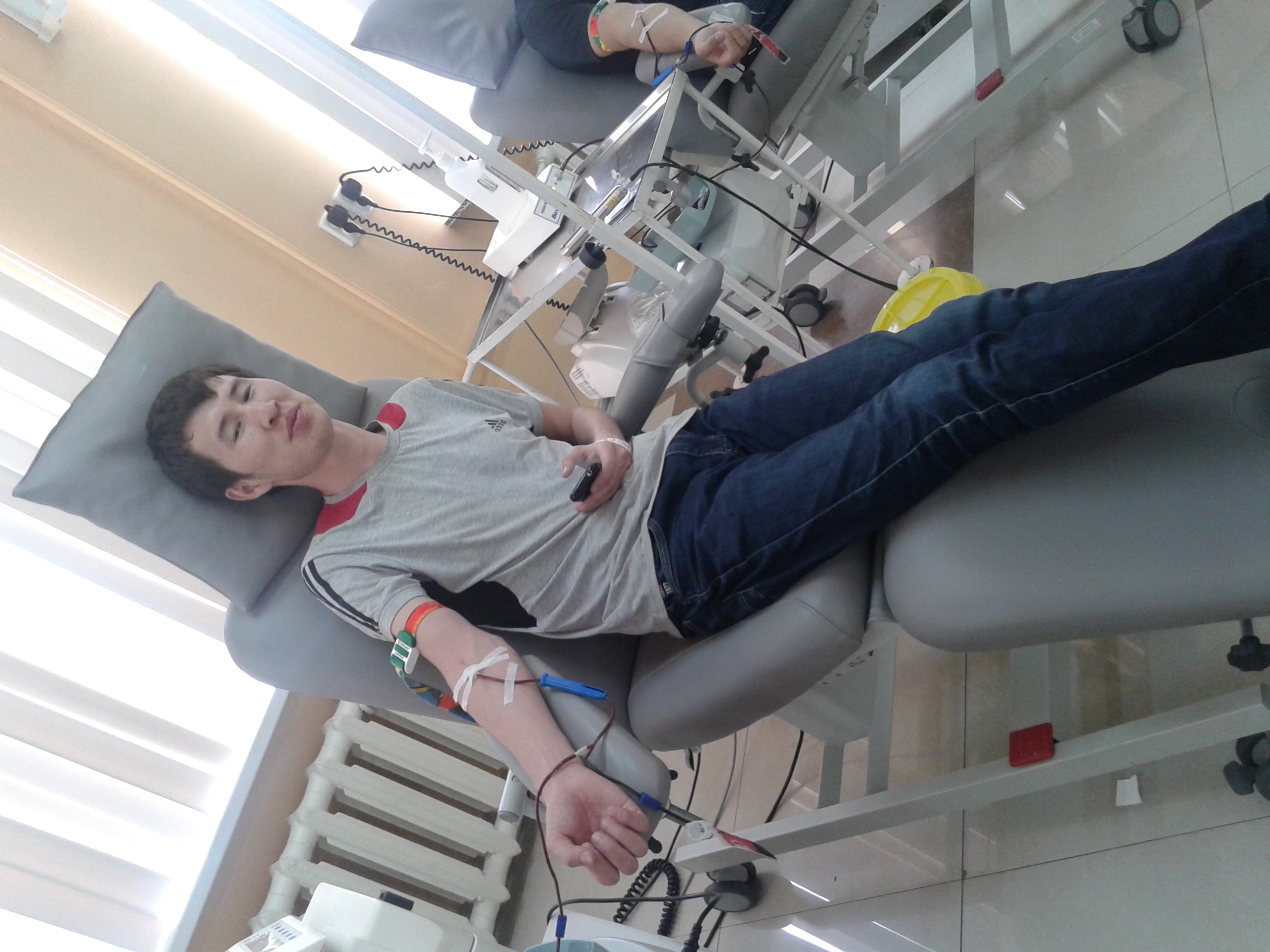 В Республиканском центре крови бесплатно сдали кровь студенты 5 курса 009 2 факультета «Общая медицина»: Сагатбаев Жасулан Салихжанович, Сагындыков Марат Жумагалиевич, Хамитов Адлет Калауович, преподаватель ассистент кафедры нервных болезней Смагулова Алия Рафиковна.