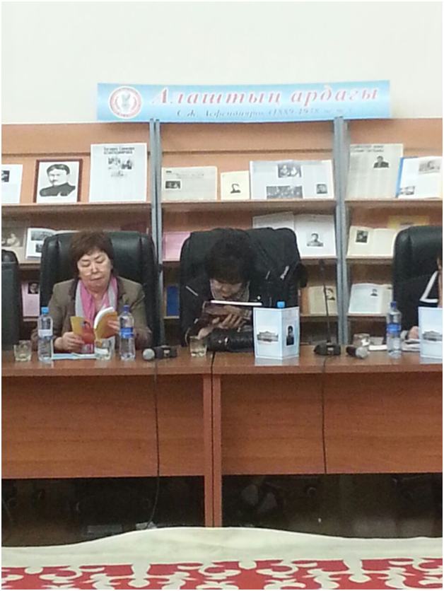 Дөңгелек үстел жұмысына С.Ж.Асфендияров атындағы ҚазҰМУ кітапханасы «Алаштың ардағы» атты кітап көрмесін ұйымдастырды.