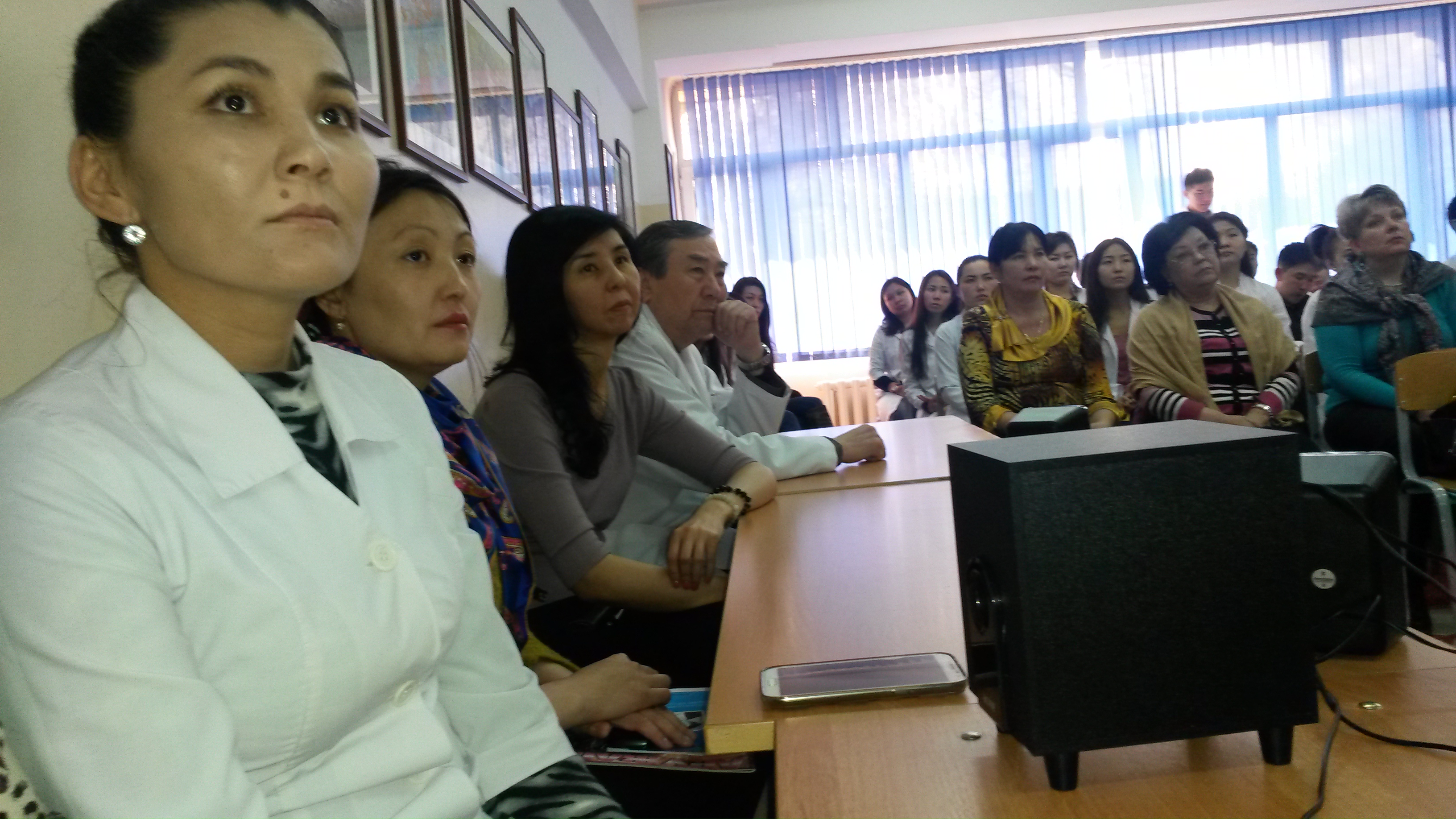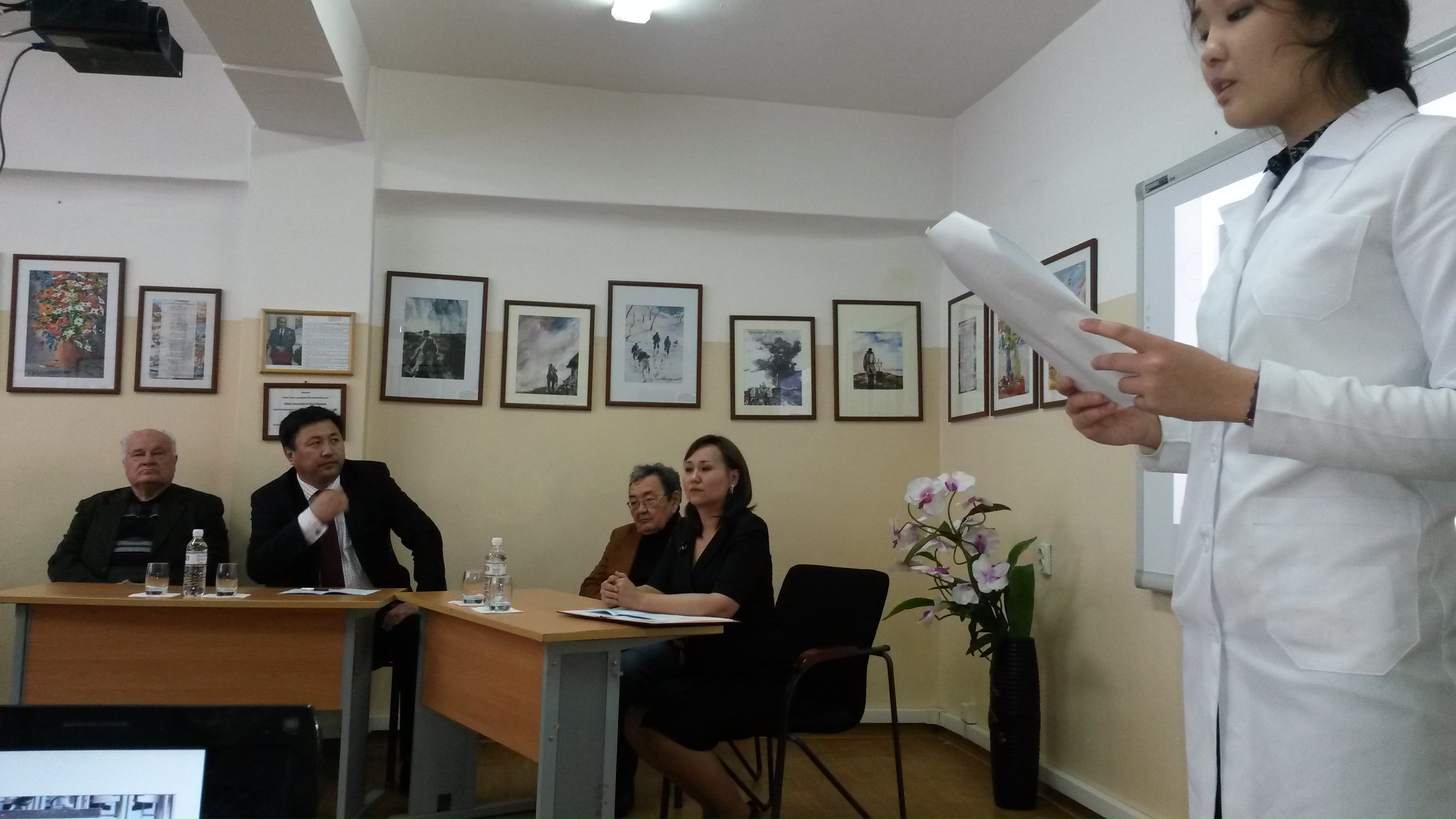 Заседание началось с доклада студентки1 курса факультета ОМ14-042 Ерланова Еркежано трудовой деятельности Почетного профессора КазНМУ Х.К. Сатпаевой. Ученица профессора ст.преподаватель модуля валеологии Жетписбаева Г.Д. рассказала о работе Ханисы Канышевны в тылу в годы Великой Отечественной войны.Далее выступила профессор Мустафина Ж.Г.,которая рассказала о доблестном труде казахстанцев в тылу в годы ВОВ и об участии Ханисы Канышевны. За работу в тылу она была награждена медалью «За доблестный труд в тылу в годы ВОВ 1941-1945гг.».В беседе о научной, педагогической деятельности профессора Сатпаевой Х.К. приняли участие декан факультета фармации профессор Датхаев У.М., профессор кафедры нормальной физиологии Соколов А.Д. и сотрудники модуля нормальной физиологии доц. Байжанова Н.С., доц. Хасенова К.Х.Сын профессора Сатпаевой Х.К. к.ф.н. Жармагамбетов Н.К.поделился воспоминаниями мамы.