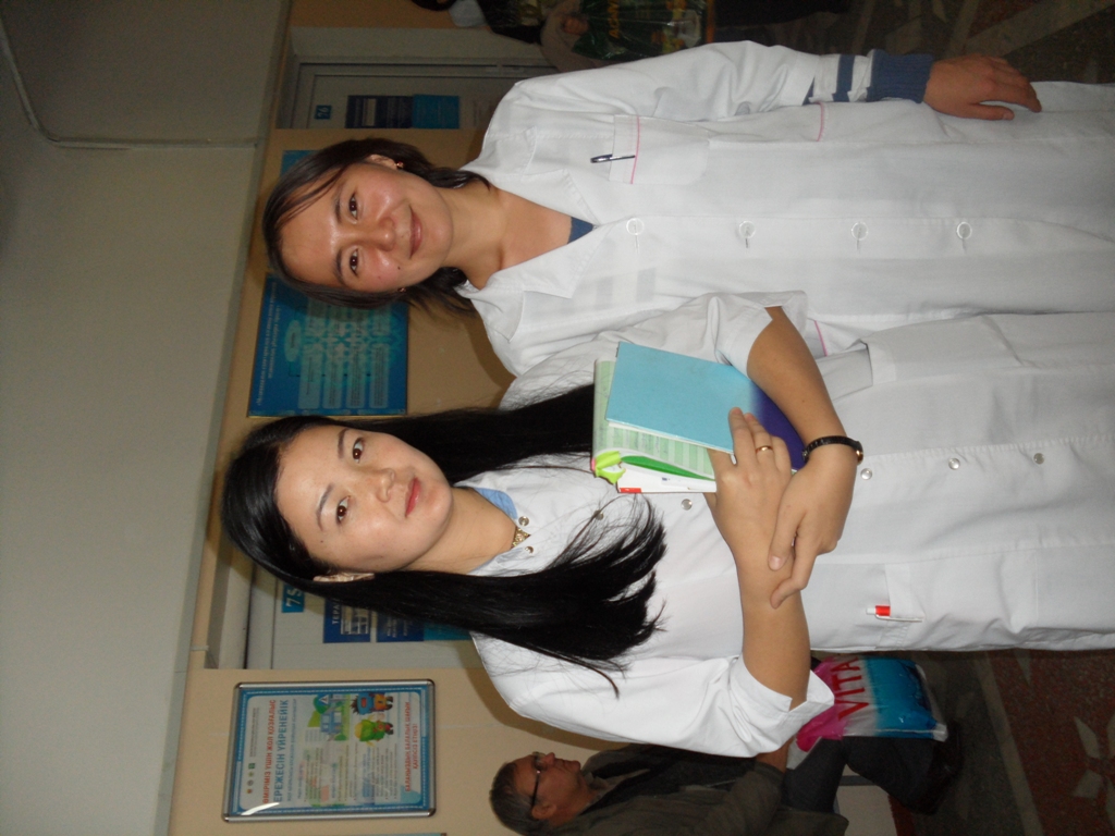 В проведении флеш-моба активное участие принимали все студенты, но особо отличились студенты 5 курса ОМ 34-1 (Артыкбаева Асем, Дауталиева Акбала, Жапар Құрбан) и 34-2 группы (Мұхтарова Гүлнұр), что представлено на рисунках 3-6. Студенты измеряли артериальное давление пациентам с артериальной гипертензией, читали лекции, беседовали с пациентами, а также раздавали больным брошюры по профилактике инсульта.