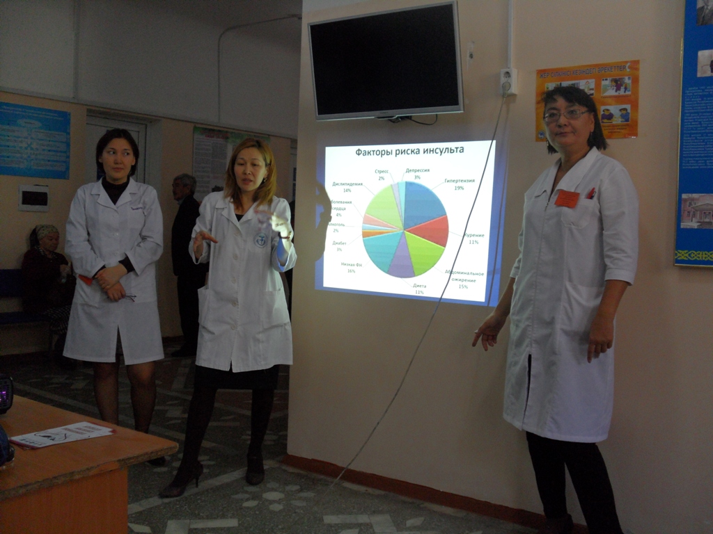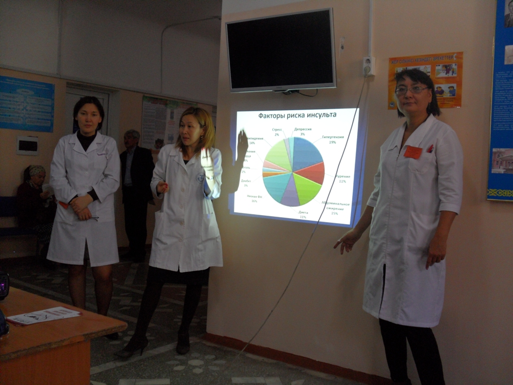 Сотрудниками кафедры скорой и неотложной медицинской помощи в ГКП на ПХВ «Поликлиника ВОВ» был проведен флэш-моб «Инсульт – это