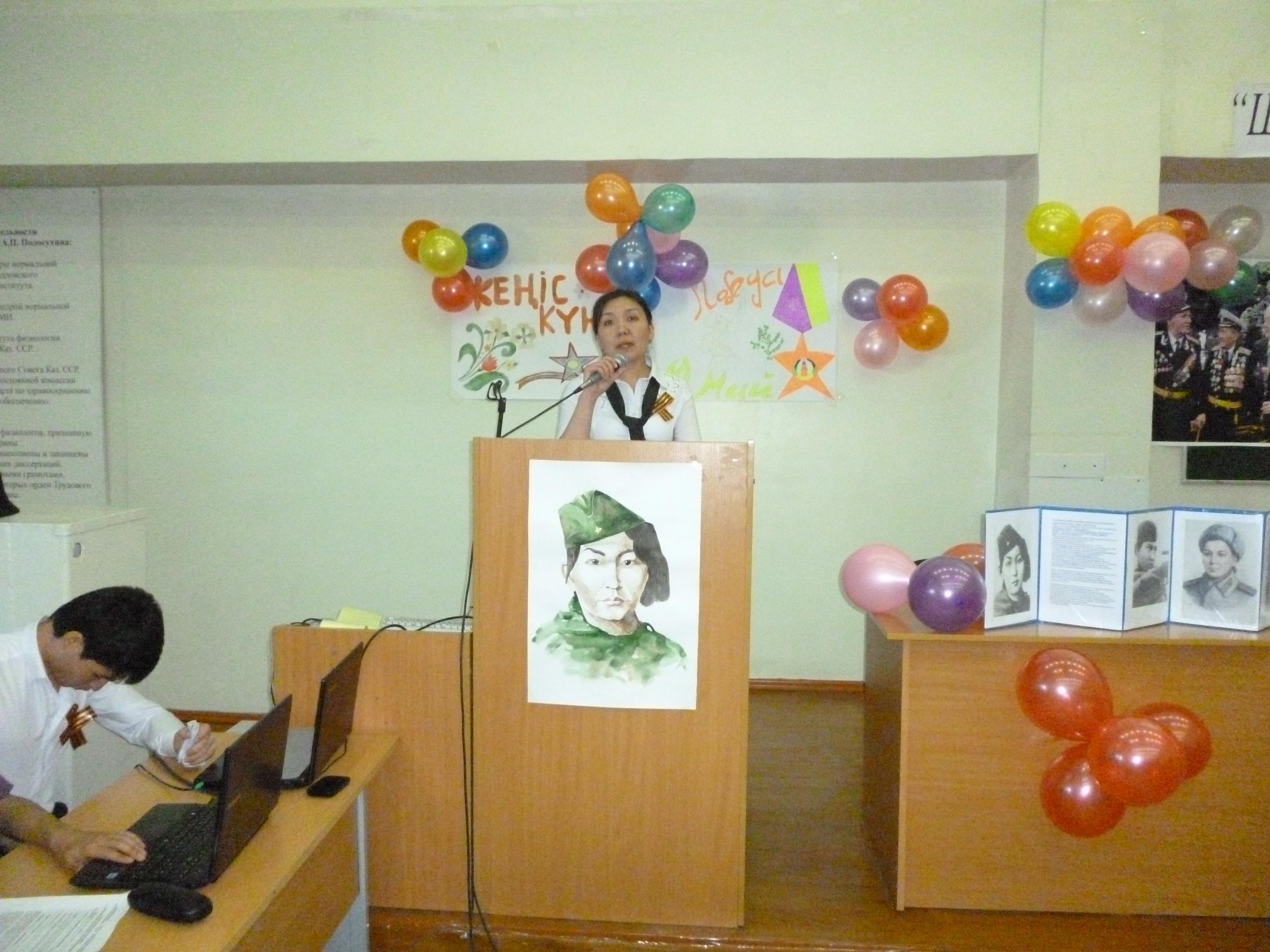 Кешке кафедра оқытушылары және студенттер қатысты. Кеш барысында, Елбасы Н.Назарбаевтың «Қазақстан – 2050» Стратегиясы-қалыптасқан мемлекеттің саяси бағыты» атты Қазақстан халқына Жолдауындағы «Жаңақазақстандық патриотизм» тарауына айрықша тоқталдық. Еліміздің барлық азаматтары ұлтына, нәсіліне қарамастан теңқұқылы және олардың Отан намысы алдындағы жалпы жауапкершілігі де ортақ екенін ерекше атап өтті. Қай заманда болмасын адамзат алдында тұрған ұлы мұрат-міндеттердің еңбастысы өзінің ісін, өмірін жалғастыратын салауатты, саналы ұрпақ тәрбиелеу болып табылады. Кеште Ерен ерлігімен тарих беттеріне есімі алтын әріппен өрілген Қазақтың қаһарманқызы, КеңесОдағының Батыры ӘЛИЯ МОЛДАҒҰЛОВАНЫҢ өмірі мен соғыс жылдары туралы, халқы үшін ерен еңбегі туралы баяндамалар оқылды. Әлия турлы көрініс қойылды. «Әлия» әні шырқалды.