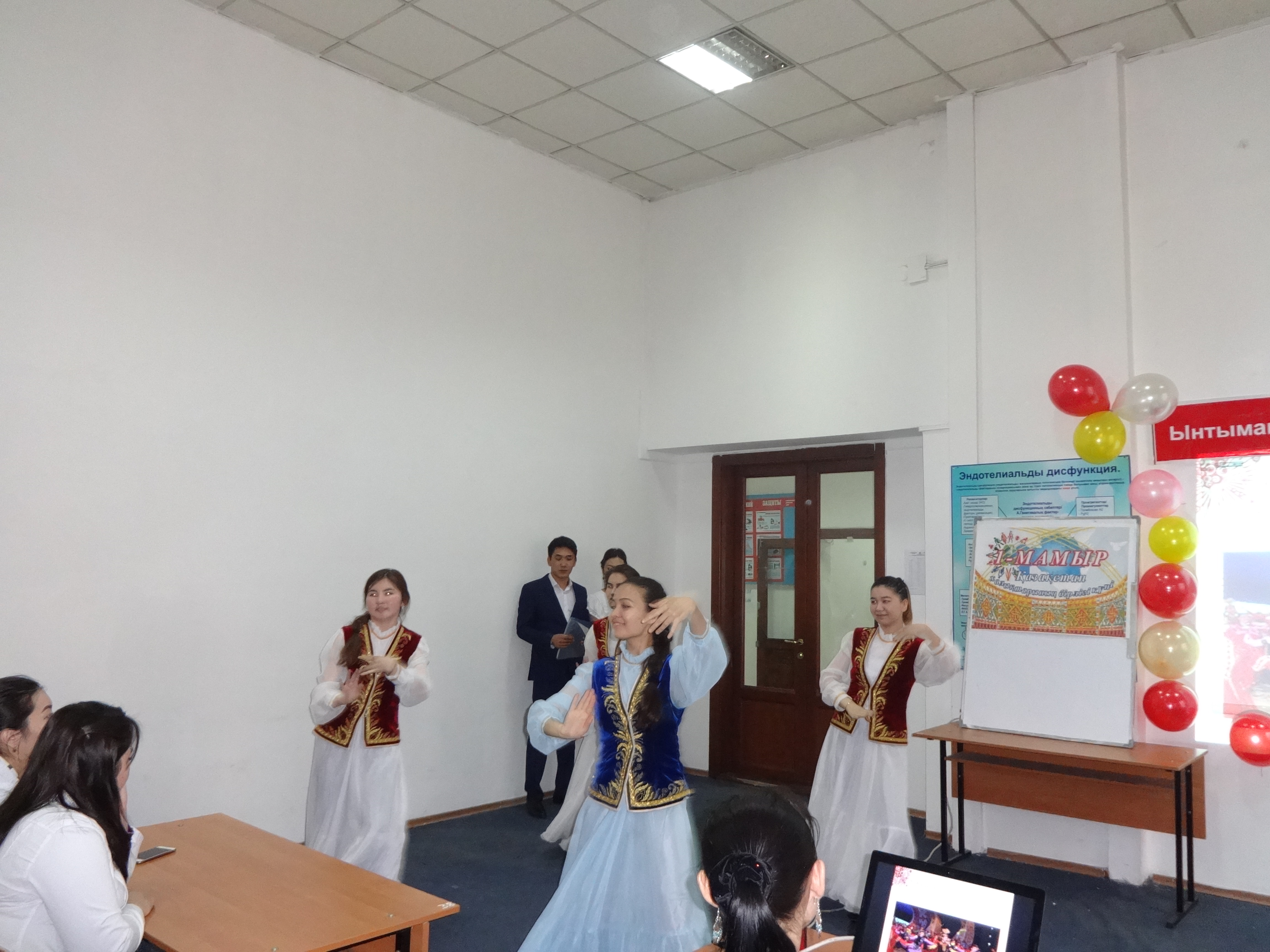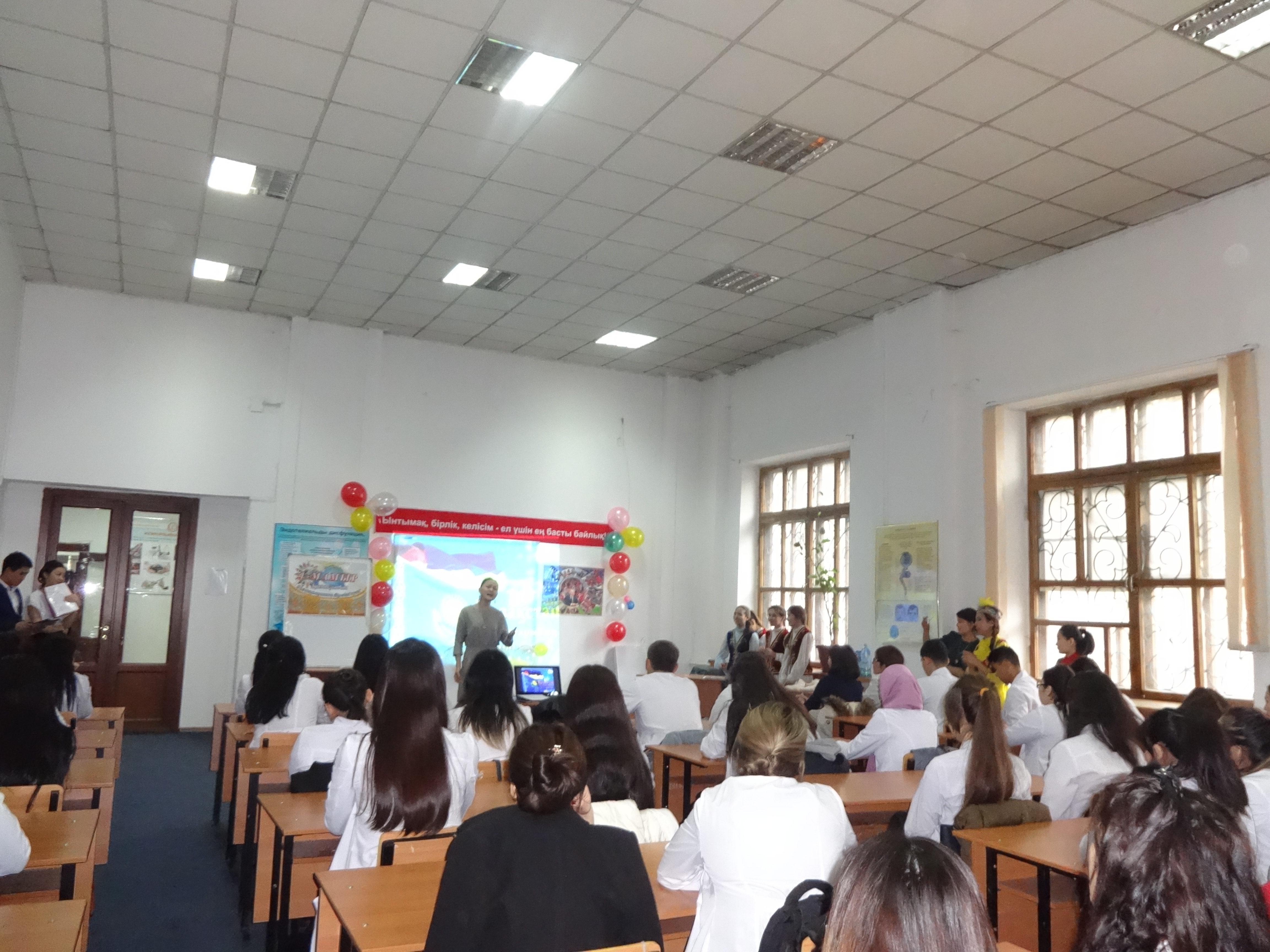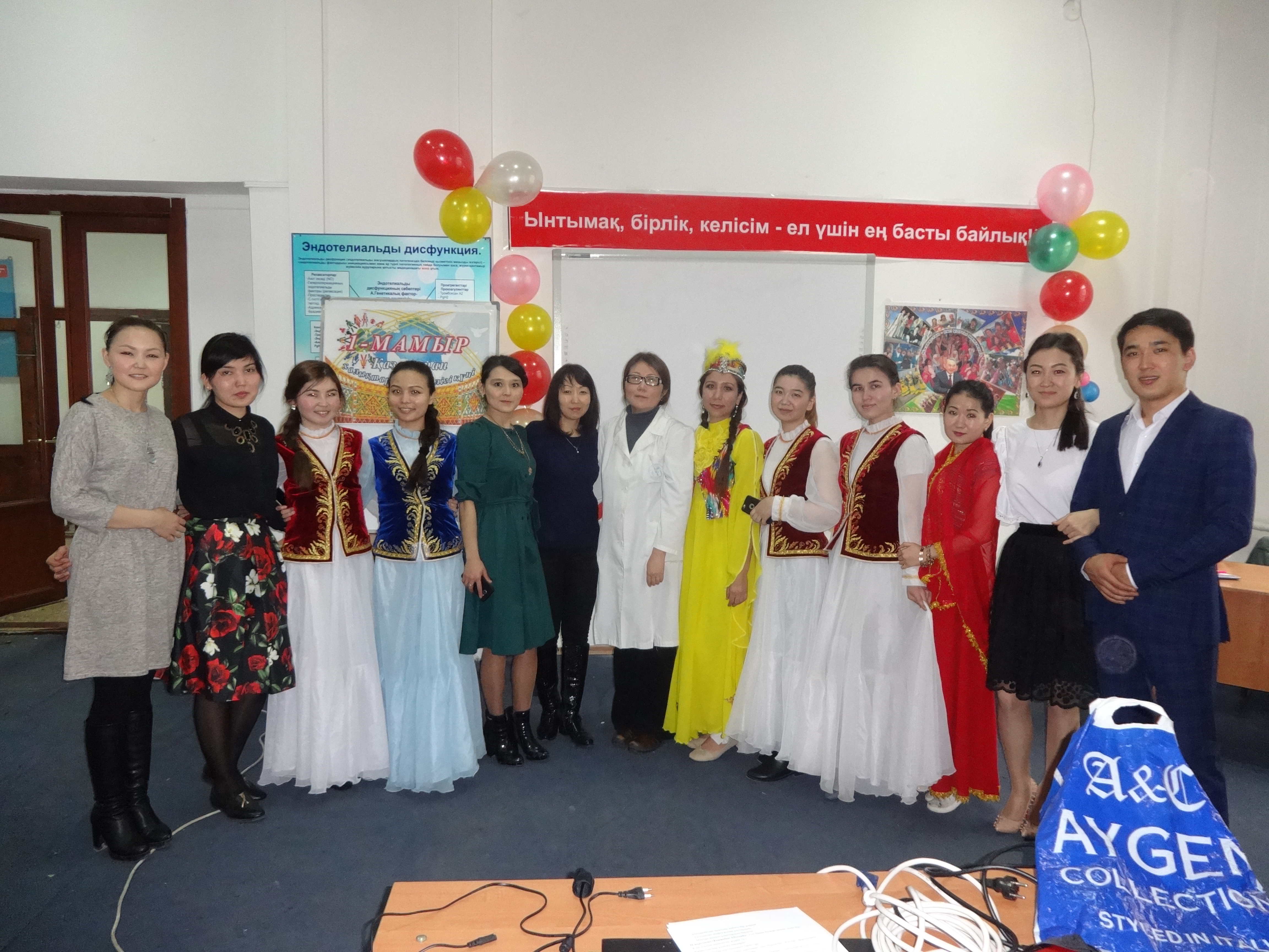 Студентами 14-019-02 группы III курса факультета «Общая медицина» под руководством ППС кафедры нормальной физиологии с курсом валеологии совместно с ППС кафедры фармакологии было организовано и проведено мероприятие, посвященное празднику 1 мая «Ынтымақ, бірлік, келісім – ел үшін ең басты байлық» (04 апреля 2017 г.) в аудитории №18 с приглашением проректора по воспитательной работе Р.Т.Джумашевой, начальника управления по воспитательной и социальной работе М.Т.Султановой, декана факультета «Общая медицина» Г.А.Шопаевой, заместителя декана 4 курса Ж.Ж.Курмангалиевой, заместителей декана 3 курса С.Х.Наккажиной и Г.Н.Бейсегуловой. Ответственные за мероприятие и студенты 14-019-02 группы III курса факультета «Общая медицина» обратили внимание студентов на формирование дружеских отношений между студентами; воспитывать у студентов уважение к культурам, историческому прошлому и наследию народов, проживающих в Казахстане; формирование у студентов казахстанского патриотизма посредством культурного наследия народов Казахстана, что и явилось целью проведенного вечера.