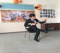 Іс-шарада өлеңдер оқылып, соғыс туралы қазақ және орыс тілдерінде әндерін айтты (“Синий платочек”, “В землянке”, “Журавли”, “Смуглянка”), Отеулиев Жәнібек домбырамен “Ақсақ құлан” күйін, С ЖМ17-29-2 студенті Джалгасбаева Диана “Трагедия” жауынгер туралы өлең оқыды.