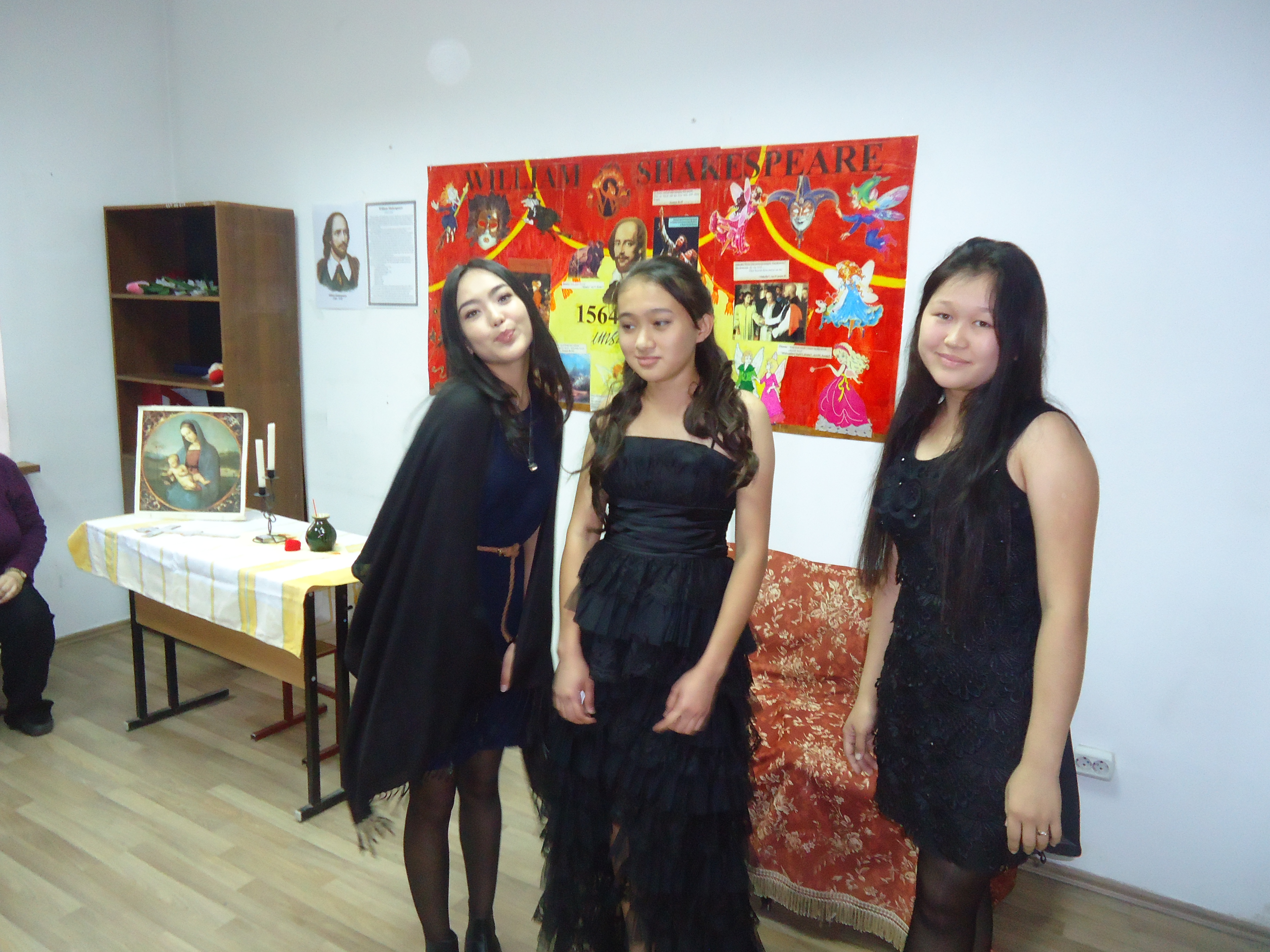 Әдеби- кеште студенттер В. Шекспирдің әйгілі трагедиялары мен комедияларынан үзінді көрсетті: «Макбет», «Рамео және Джульетта», «Жазғы күнгі түс» онымен қатар №130, 154 сонеталарын оқыды.