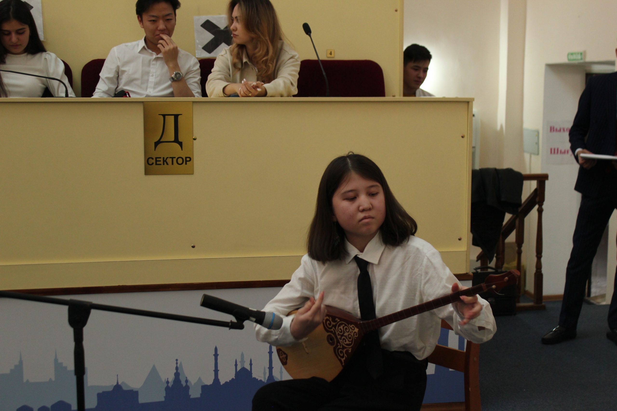 Приветсвенное слово было предоставлено Проректору по корпоративной работе проф.У.М.Датхаеву, затем выступила заведующая кафедрой языковых дисциплин Бактыбаева А.Т. Надо отметить, что данное мерприятие вызвало большой интерес у студентов. Первокурсники приняли активное участие в организации праздника, где они смогли показать свои таланты стихами, танцами и песнями. В знак благодарности студентам доцент кафедры языковых дисциплин Зайсанбаев Т.К. сыграл на добре и спел красивую песню на казахском языке.