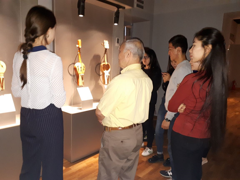Музей қорында қазақ халқының ұлттық музыкалық аспаптарымен қатар түрік халықтары, сондай–ақ әлемнің 34 елінің музыкалық 1200-ден астам экспонаттар бар екендігін, солардың ішінде көрмеге қойылғандарымен туристік гид Жұбатқанова Қолқанат таныстырды.