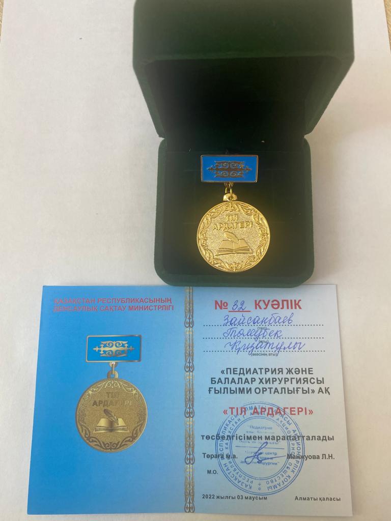 Медицина ғылымының мемлекеттік тілде дамуына зор үлес қосып жүрген тіл жанашырларына шығармашылық табыс, зор денсаулық тілейміз. Осындай азаматтармыз тұрғанда қазақ тілінің, қазақ елінің болашағы жарқын деп нық сеніммен айта аламыз.