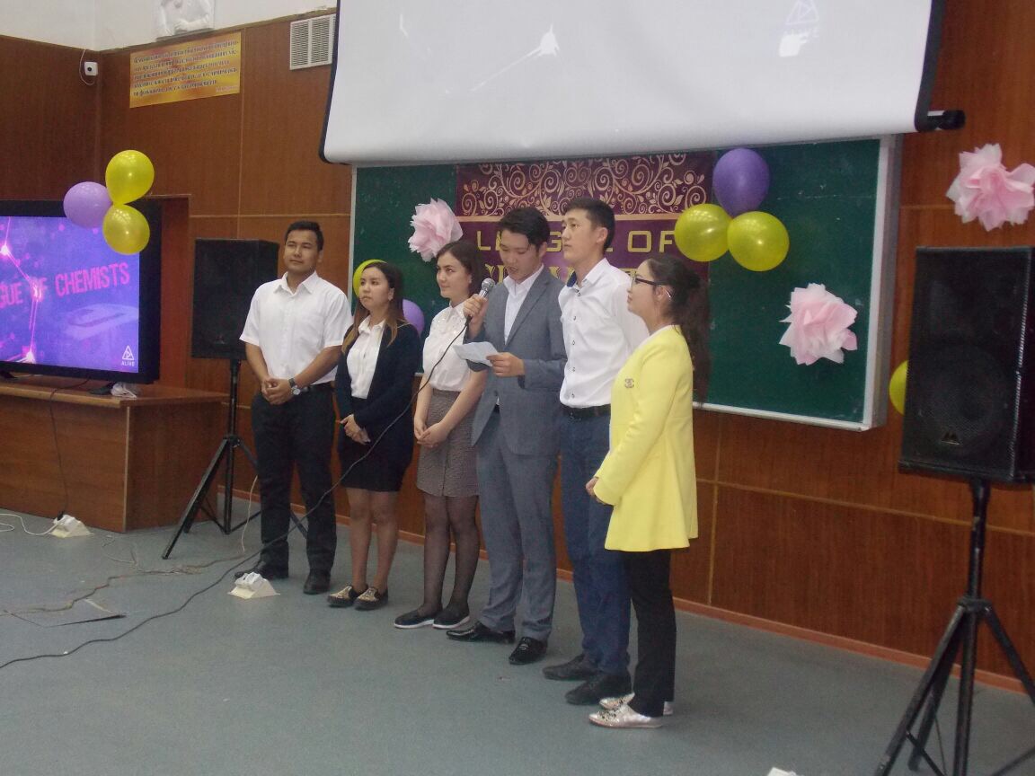 2017 жылдың сәуір айының 20-шы жұлдызында аль-Фараби атындағы Қазақ Ұлттық Университетінің химия және химиялық технология факультетінің физикалық химия, катализ және мұнайхимиясы кафедрасы мен С.Ж. Асфендияров атындағы Қазақ Ұлттық Медициналық Университетінің биологиялық химия кафедрасының және Қ.И. Сәтбаев атындағы Қазақ Ұлттық Техникалық Зерттеу Университетінің химиялық технология кафедрасы студенттері арасында «LEAGUE OF СHEMISTS» атты интеллектуалдық сайысы өтті. 3 турдан тұратын сайысқа құрама жеті команда қатысты:  Қ.И.Сәтбаев атындағы Қазақ ұлттық техникалық зерттеу университетінің  xимиялық теxнология кафедрасының  командасы «ЛЕД И ПЛАМЯ» (команда капитаны – Алихан Жеңіс); С.Ж.Асфендияров атындағы Қазақ ұлттық медицина университетінің жалпы медицина факультеті, биологиялық xимия кафедрасының екі командасы – «АСКЛЕПИЙ» (команда капитаны – Серкебаева Жанерке) және  «STARSHIPS» (команда капитаны – Тұралыұлы Әділ); әл-Фараби атындағы Қазақ Ұлттық Университетінің xимия және xимиялық теxнология факультетінің үш командасы «Тәуекел» (команда капитаны – Батырбек Сандыбай), «АРХИМЕД ІЗБАСАРЛАРЫ» (команда капитаны – Нұршәріп Арманбек), «МЕНДЕЛЛЕВ ОТРЯДЫ» (команда капитаны – Арипбаева Арайлым) және «МOONAY».