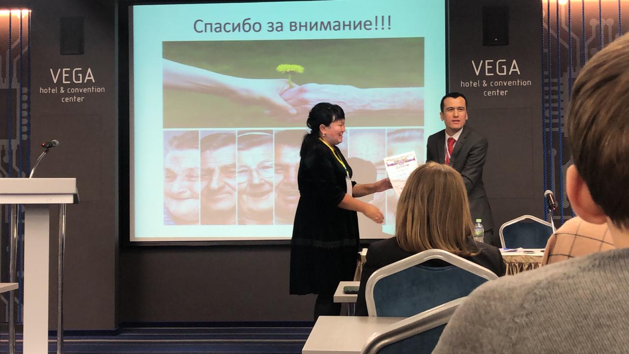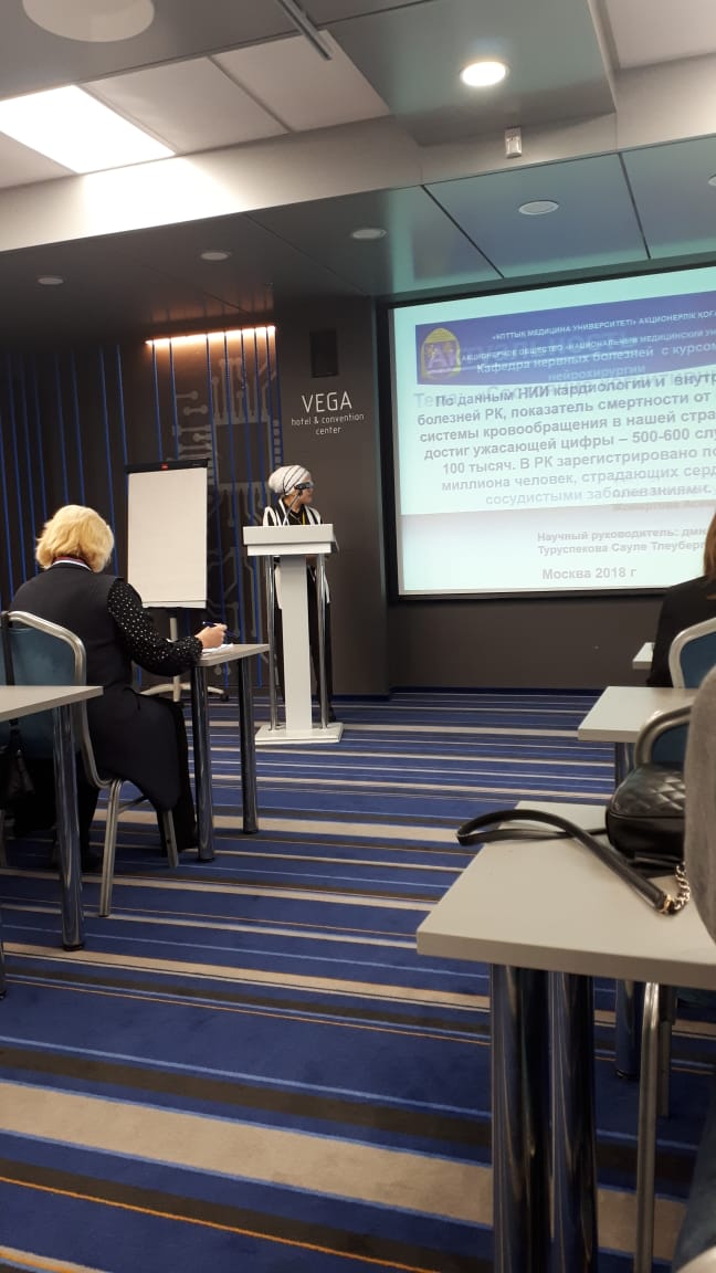в мероприятии под руководством заведующей кафедры  нервные болезни с курсом нейрохирургии Туруспековой С.Т., приняли активное  участие ассистент кафедры Демесинова Б.К и студенты 5 курса  факультета общей медицины  Ахмет М.С. и Жомартова А.Б.  Ассистент Демесинова Б.К выступила с научным докладом на тему: «Первые результаты скрининга умеренных когнитивных нарушений среди лиц страше 60 лет в казахской популяции», а  темой доклада  наших студентов  была: «Состояние когнитивных функций у больных артериальной гипертензией».